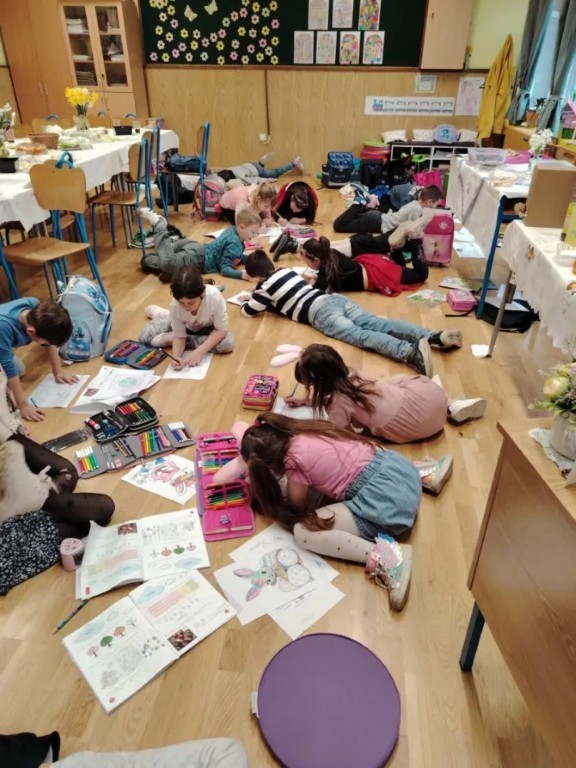 Nakon obilnog blagovanja, trebalo je te kalorije i potrošiti. Stoga su učenici sudjelovali u različitim prigodnim igrama: jajoboju, lovu na pisanice i utrci s jajima. Učenici 1.b su se veselili i zanimljivim tematskim zadatcima iz matematike i prirode i društva koji su upotpunili Integrirani radni dan.