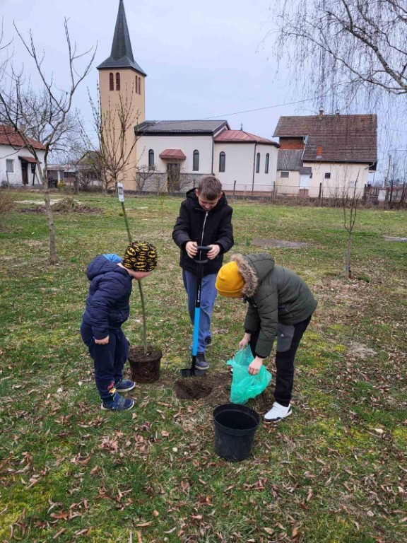 Radi se o projektu pod nazivom Tragovima prirode koji se provodi u sklopu izvannastavnih aktivnosti. Ovim projektom želimo odgojiti i obrazovati odgovorne ljude koji će brinuti o sebi, drugima i planeti na kojoj žive, poštovati dobivene resurse i pronaći načine kako osigurati održivi razvoj u budućnosti. Također želimo razviti odgovornost kod učenika prema prirodi kao živom organizmu gdje su svi pojedini dijelovi međusobno ovisni i povezani, proširiti svjesnost da su i oni dio te prirode te ih naučiti kako se povezivati s prirodom radi tjelesne, psihološke i duhovne dobrobiti. Ovim projektom želimo pristupiti prirodi oko nas na multidisciplinaran način povezivanjem različitih predmeta (ekologije, prirode, geografije, povijesti) i znanosti s praktičnim radom i vještinama, kulturnom baštinom i narodnim običajima bizovačkog kraja uz holistički pristup zdravlju. Projektom Tragovima prirode želimo kod učenika razvijati ljubav prema prirodi i vrijednostima koje je čovjek stvorio svojim radom, te svijest o nužnosti očuvanja ravnoteže u prirodi, važnosti hrane, zaštite okoliša i njegovanja baštine, pobuditi i razviti svijest o nužnosti i vrijednosti rada za čovjekov život. Učenici aktivno sudjeluju u očuvanju prirode, recikliranju, uređenju okoliša, upoznavanju narodnih običaja u mjestu i zavičaju.