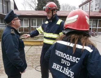 BELIŠĆE Danas prijepodne održana je taktička vježba učenika i osoblja Osnovne škole «Ivana Kukuljevića» Belišće s operativnim vatrogascima središnje vatrogasne postrojbe Dobrovoljnog vatrogasnog društva Belišće.