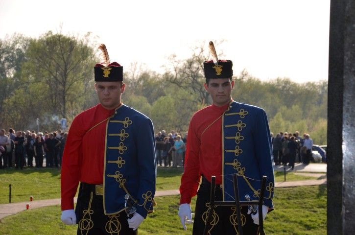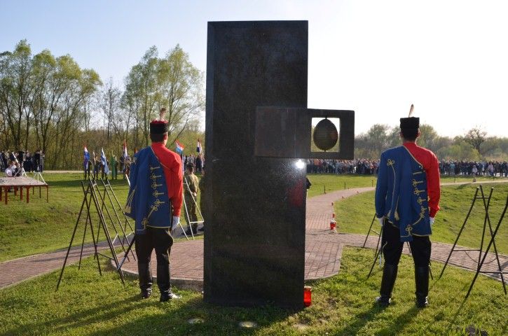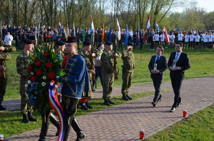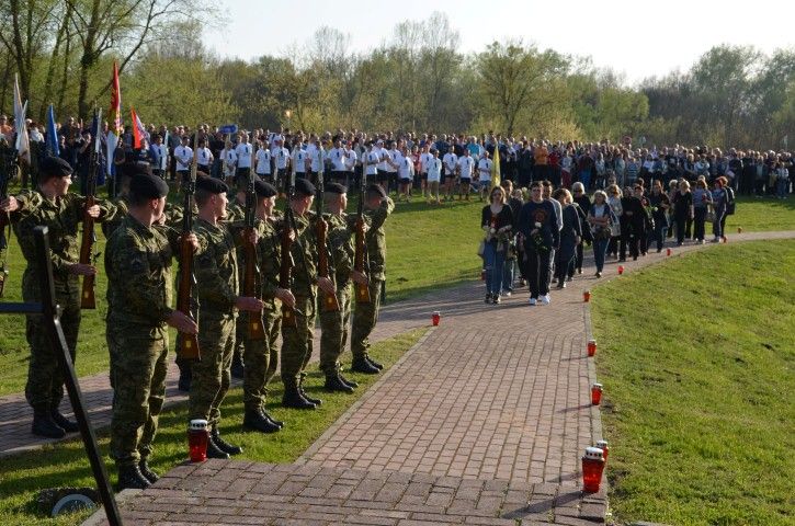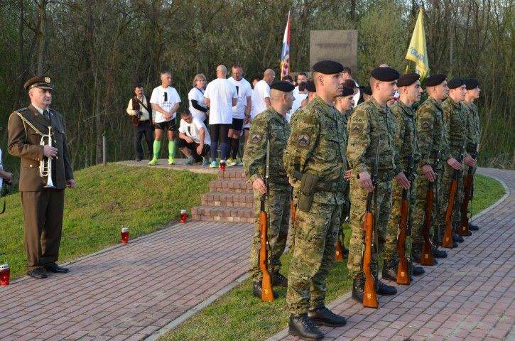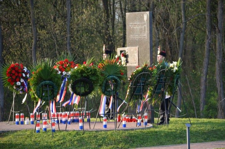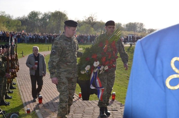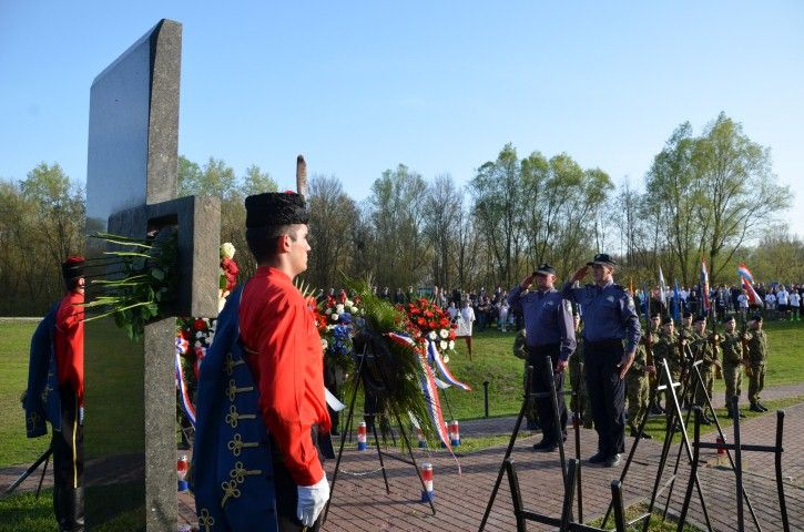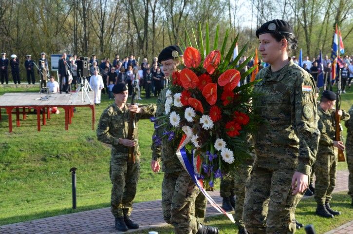 Prema protokolu, na spomen obilježje na lijevoj obali Drave položeni su vijenci i cvijeće i zapaljene svijeće u čast 17 poginulih i 85 ranjenih pripadnika 107. Brigade.