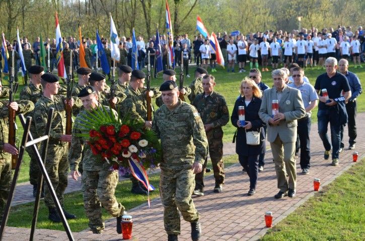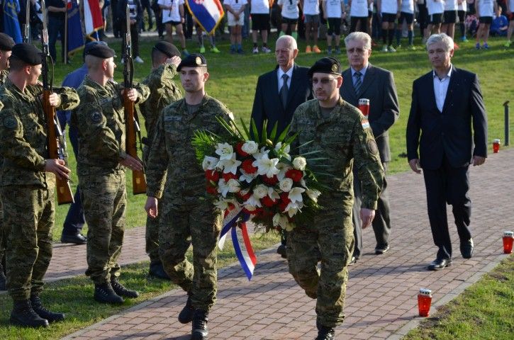 Svojim izvedbama svečanost su upotpunili pripadnici Klape Hrvatske ratne mornarice „Sveti Juraj“, a brojnim članovima obitelji, suborcima i građanima, koji su na svečanost došli u mimohodu od mosta 107. Brigade do spomen obilježja, obratili su se prigodnim govorima Marko Leko, izaslanik Ministra branitelja, general pukovnik Slavko Barić, izaslanik stožera Oružanih snaga i prvog zapovjednika 107. brigade hrvatske vojske te Tomislav Ivić, zamjenik ministra obrane i izaslanik predsjednice republike Kolinde Grabar Kitarović.