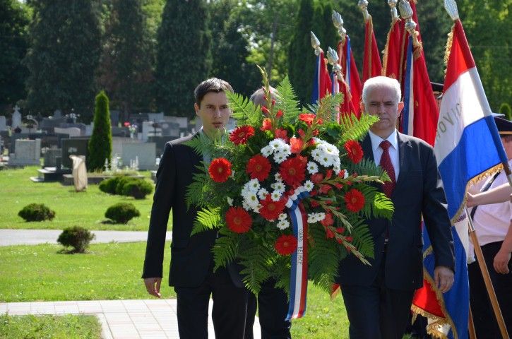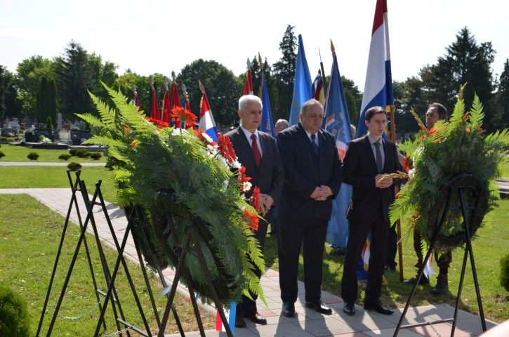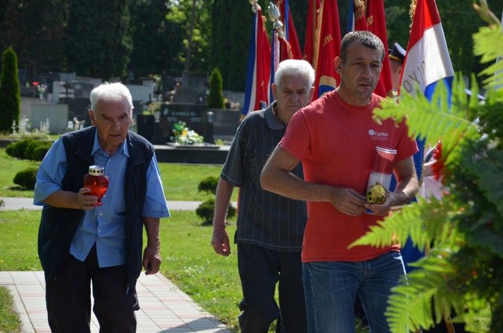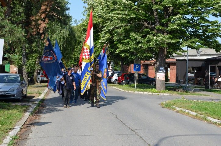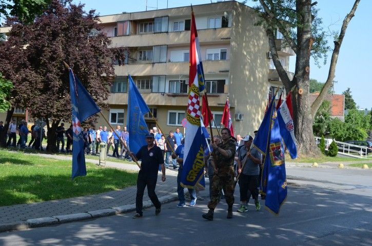 Nakon okupljanja pred zgradom Gradske uprave, branitelji i njihovi gosti u povorci su krenuli prema Gradskom groblju gdje su podno spomen križa položeni vijenci i upaljene su svijeće u spomen na poginule branitelje.