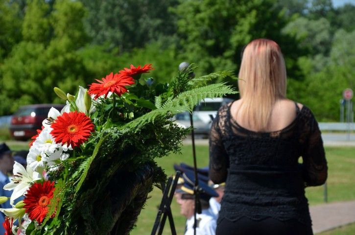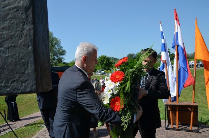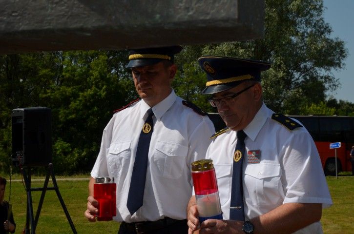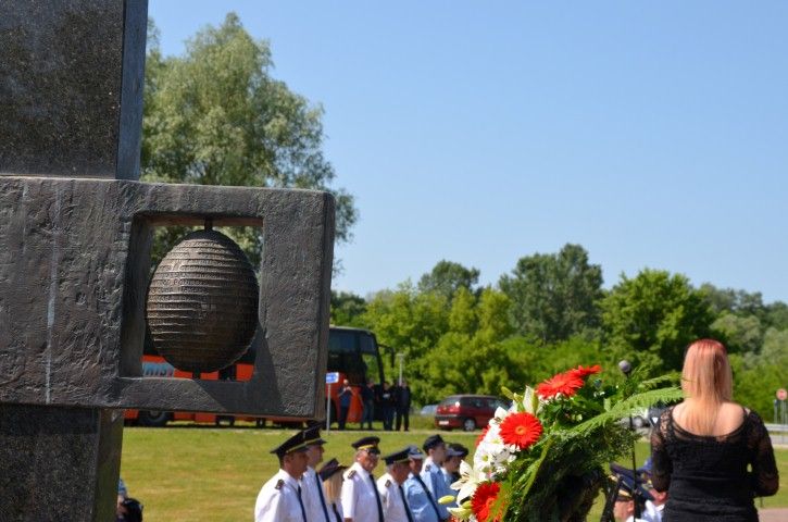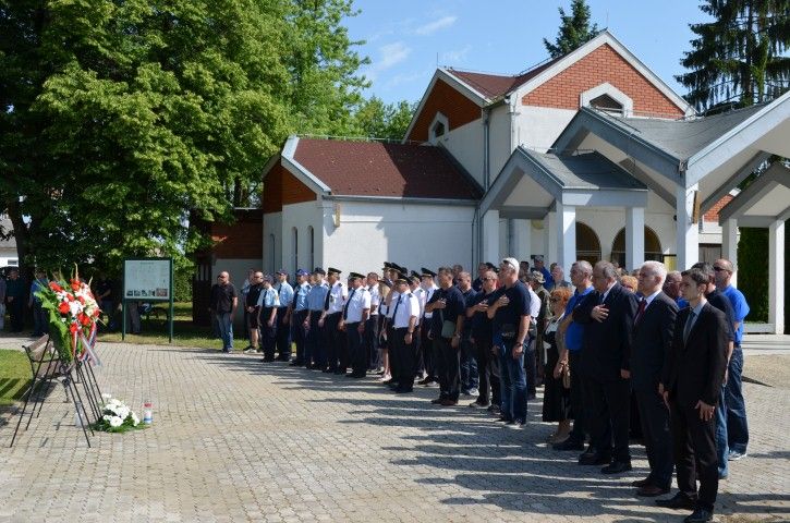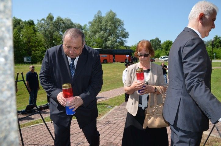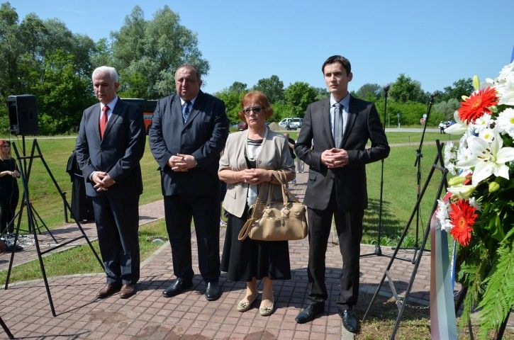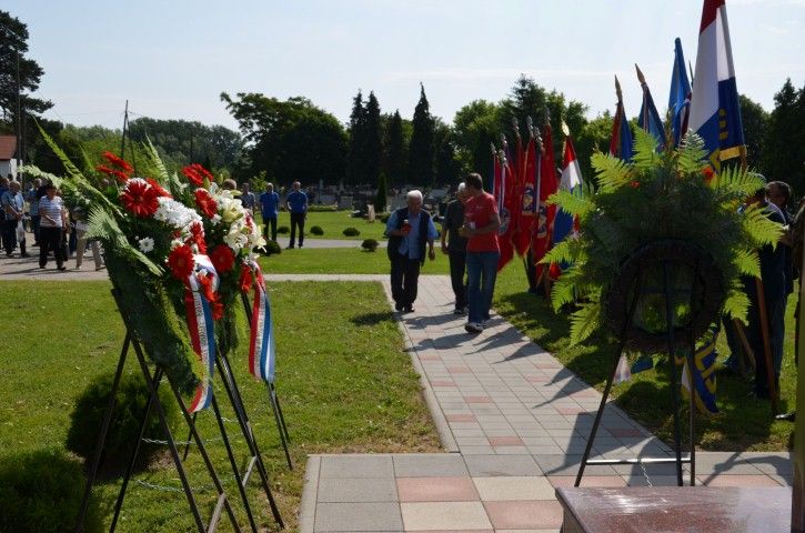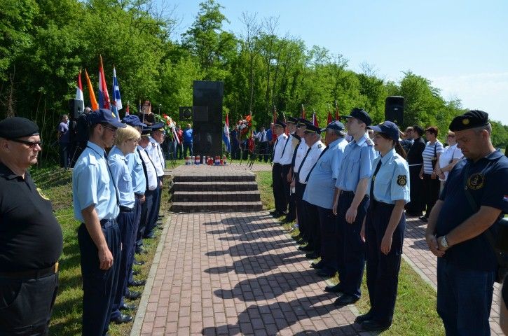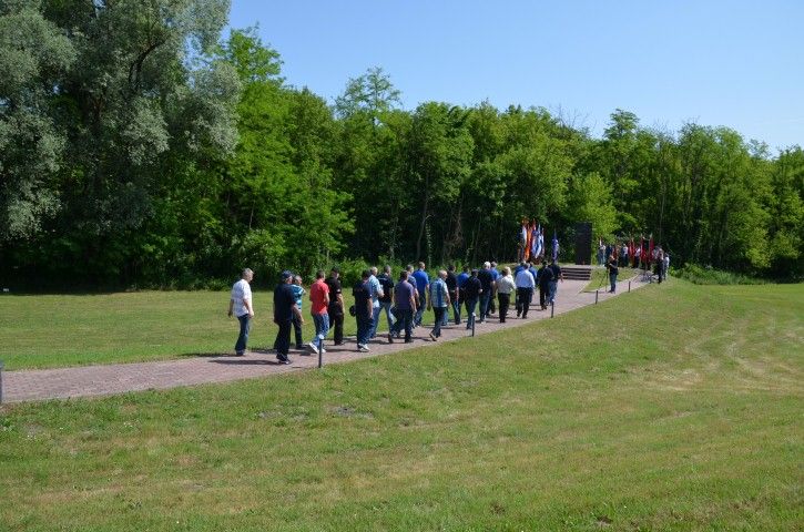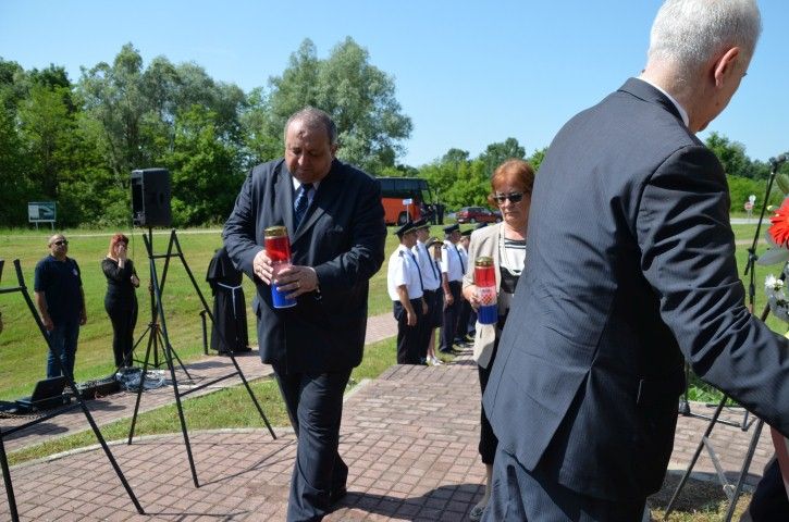 Potom su branitelji autobusima odvezeni do spomen obilježja na lijevoj obali Drave, gdje su također, u skladu s protokolom, položeni vijenci i upaljene svijeće izaslanstava gradova i općina Valpovštine te braniteljskih udruga. U kratkom glazbenom programu nastupila je Valentina Gyerek, a molitvu je predvodio fra Marin Matančić, kapelan Župe sv. Josip Radnik u Belišću.