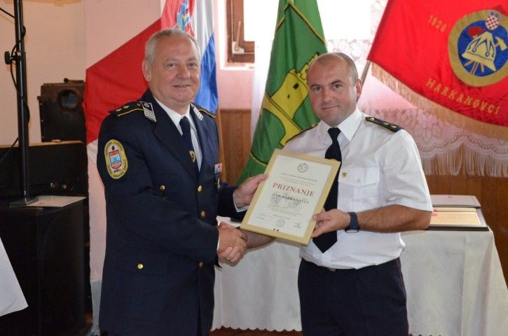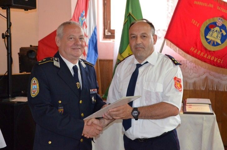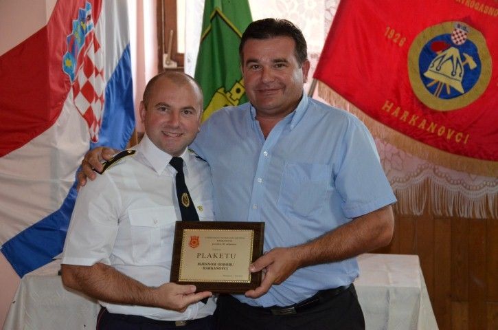 Kao domaćin velike proslave Matko Vuksanić, uručio je i plakete zaslužnima za razvoj vatrogastva u Harkanovcima – Leonu Žulju, Silvi Wendling, Nikici Muževiću, Zdravku Cveniću i Jozi Piškorjancu, a posebno je pozdravio počasnog predsjednika Marina Ribarića, Tomu Podgoračana, Đuru Babića i Željka Antolovića, čime je zaključen rad Skupštine koja je nastavljena druženjem sudionika uz svečanu večeru.