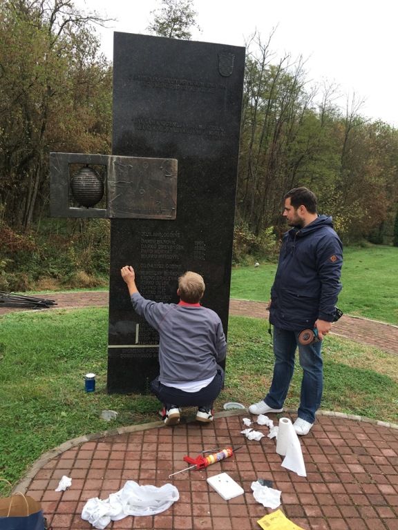 U prvoj fazi obnove, u srijedu 26. listopada 2016. godine, ugrađena su i zamijenjena ranije popadala i nedostajala slova i oznake imena i prezimena poginulih hrvatskih branitelja.