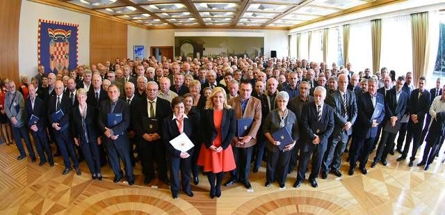 Predsjednica Republike Hrvatske Kolinda Grabar-Kitarović uručila je danas priznanja dobrovoljnim davateljima krvi koji su 2014. (ukupno 161 osoba) i 2015. godine (ukupno 185 osoba) dali krv 75 i više puta (žene) odnosno 100 i više puta (muškarci).