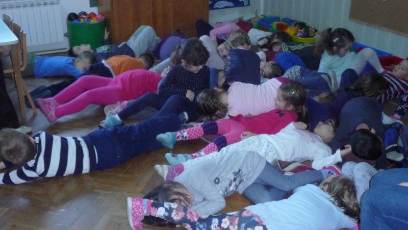 Pedesetak mališana u skupinama Sovice i Suncokreti pažljivo su slušali priču Pogodi koliko te volim, koju im je čitala Ana Vazdar, a zatim su aktivno sudjelovali u oživljavanju događanja iz priče i razgovoru na temu: može li se ljubav izmjeriti.