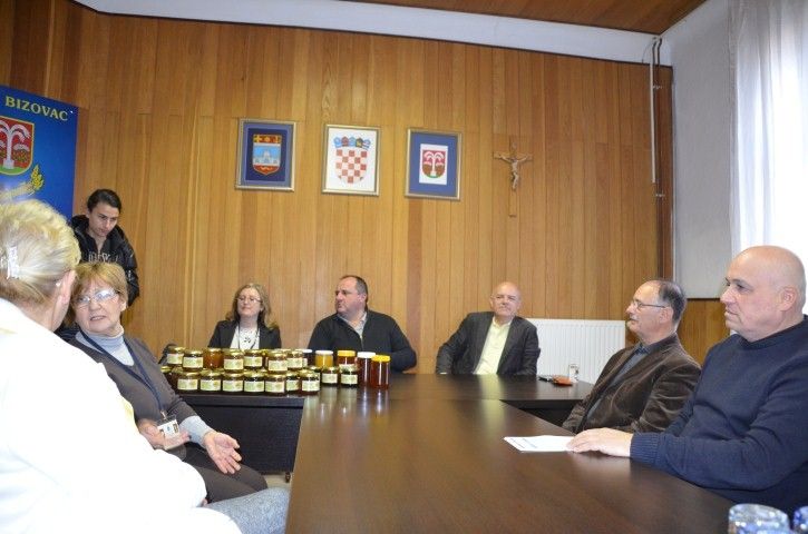 BIZOVAC Na prigodnoj svečanosti danas su predstavnici Udruge pčelara „Valpovština“ iz Valpova darivali med bizovačkoj Udruzi Svetog Vinka Paulskog.