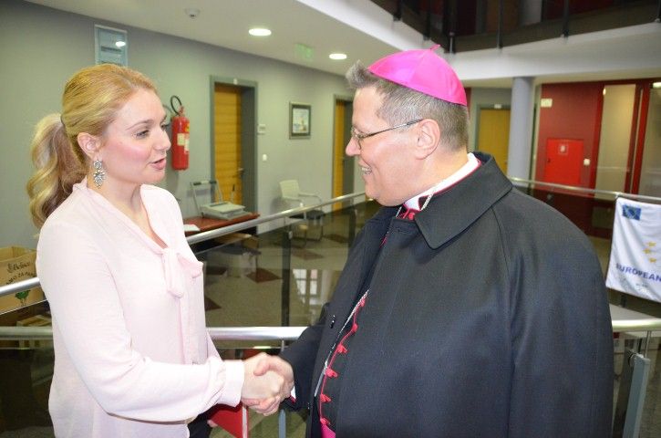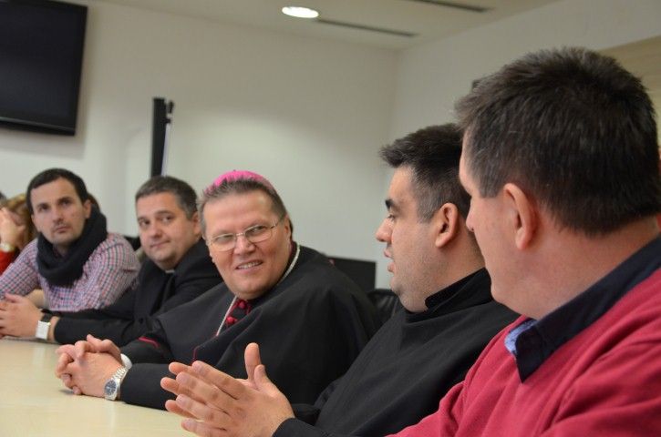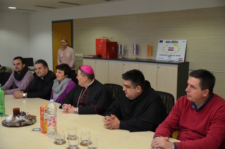 Gradonačelnik je poželio srdačnu dobrodošlicu nadbiskupu i ostalim gostima te istaknuo kako je program vjeronauka u vrtiću pravo bogatstvo te je izrazio veliko zadovoljstvo na realizaciji tog projekta. Ukazao je i na inicijatore tog projekta- Fra Branka Janjića i ravnatelja Zdenka Glasovca i pohvalio ih za ideju, koju nije bilo teško provesi u djelo. Nadbiskup Đuro Hranić pohvalio je podršku i financijska sredstva koju je Grad uputio vrtiću za pokretanje i realizaciju programa vjerskog odgoja te naglasio da je ovo prvi takav primjer u Republici Hrvatskoj, te može poslužiti kao uzor ostalima. Pohvaljena je i izuzetno dobra suradnja Grada i Župe u Belišću, a bilo je riječi i o provedbi projekta obnove i podizanja energetske učinkovitosti belišćanske crkve. Pri tome je gradonačelnik najavio odluku da će za te namjene iz proračuna izdvajati po 100 tisuća kuna svake godine tijekom petogodišnjeg razdoblja obnove crkve, a biskupa zamolio da crkva na sebe preuzme vodstvo u provedbi tog projekta i stane iza projekta i vlastitim udjelom.