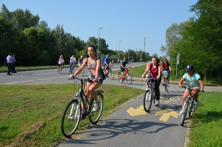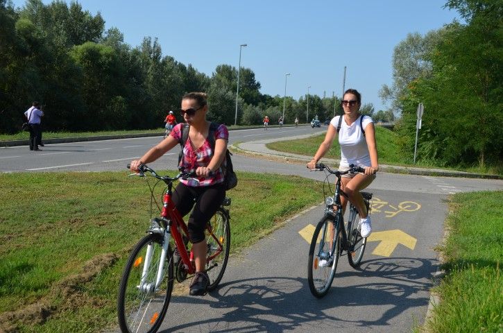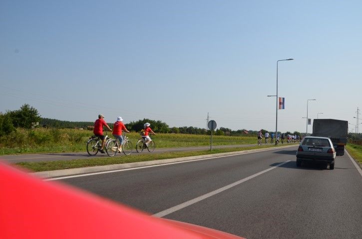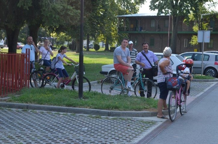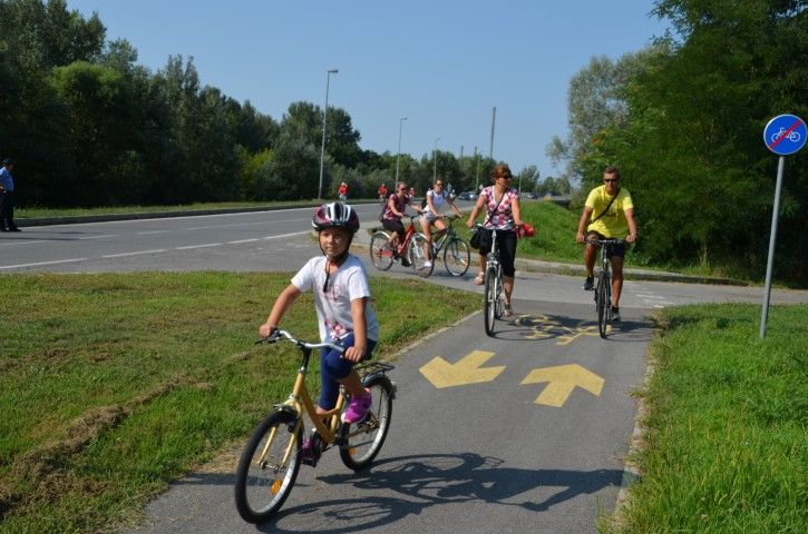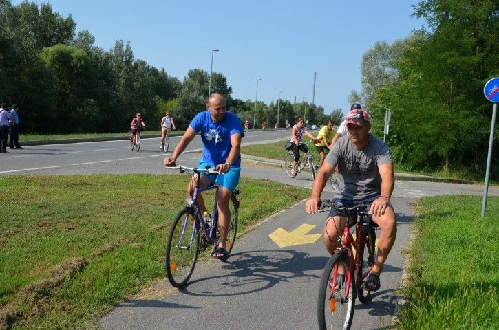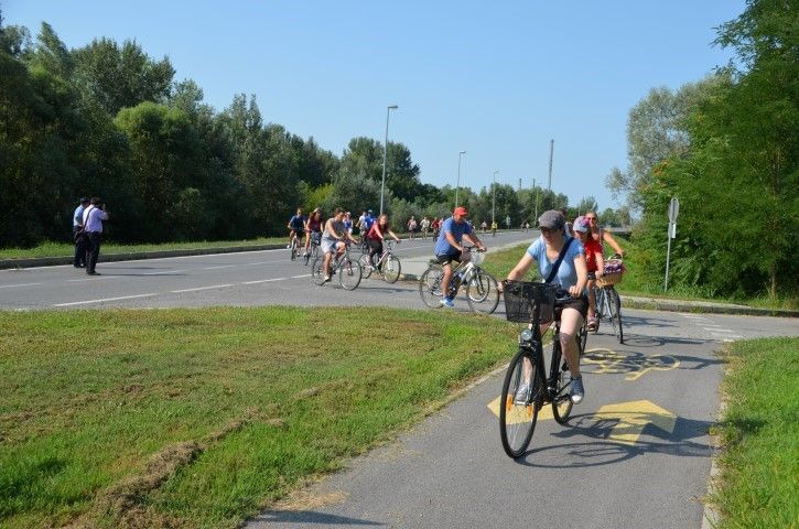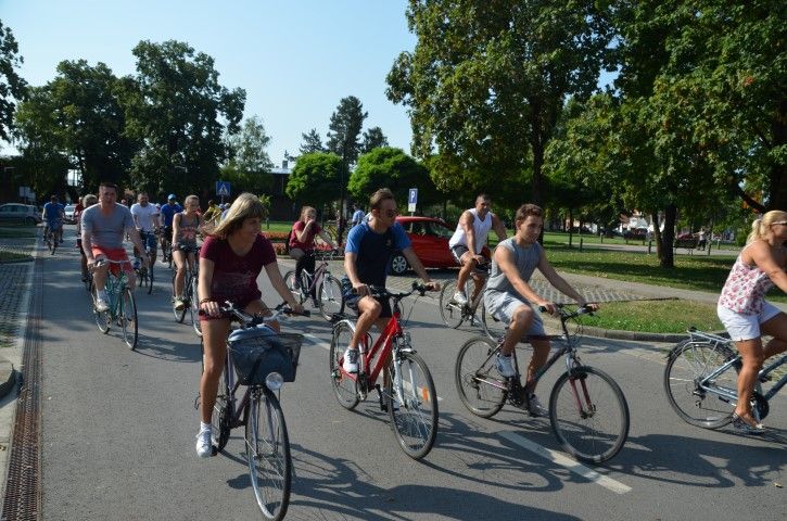 Velik broj građana okupio se ispred zgrade Gradske uprave odakle su u biciklističkoj koloni, predvođenoj Anom Pavlović Martinović, krenuli prema spomeniku poginulim pripadnicima 107. brigade Hrvatske vojske na lijevoj obali Drave.