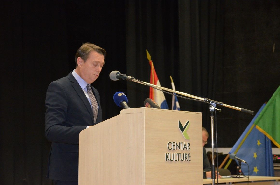 U obraćanju je iznio situaciju koju je zatekao u Gradu nakon izbora te pregled aktivnosti nove Gradske uprave tijekom proteklih šest mjeseci obnašanja vlasti. Naglasio je pri tom odlučnost da nastavi s rekonstrukcijom Gradske uprave i poduzeća kojim upravlja Grad i kadrovskim osnaživanjem kako bi se uspješno nosili s izazovima koji stoje pred njima. Iznio je osnovne planove koje će promovirati kroz proračun za 2018. godinu s naglaskom na ubrzaniji rast gospodarstva, kao temeljnim ciljem, najavljujući za sedamdeset posto veće izvorne prihode proračuna, kao posljedicu vladine politike i ispravljanja negativnih učinaka indeksa razvijenosti.