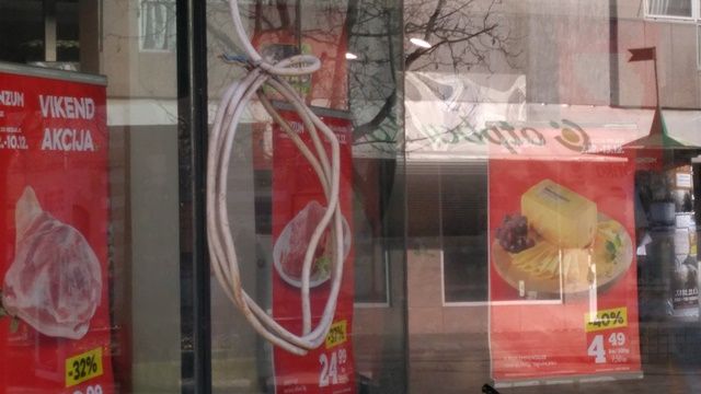 VALPOVO Već nekoliko dana ovaj smotuljak nečije nebrige visi nad glavama prolaznicima i potencijalnim kupcima prodavaonica u zgradi bivše Valme.
