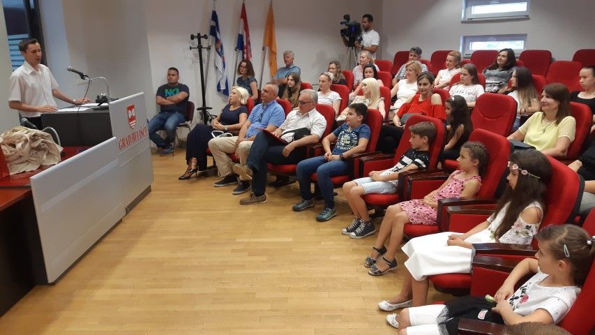 U ime Grada pozdravio ih je zamjenik gradonačelnika Domagoj Varžić, naglašavajući kako je ovo izniman uspjeh učenika koji su se istaknuli na različitim poljima (fizike, matematike, tehničke kulture, u istraživačkim projektima, likovnim i literarnim radovima te glazbenim nastupima). Također su se prigodnim riječima obratili i ravnatelj OŠ Ivana Kukuljevića Belišće, Darko Kovač te voditeljica Glazbene škole Belišće Latinka Ruski, a prijmu je nazočio i ravnatelj OŠ M.P. Katančića Valpovo, Dalibor Košutić. Uz učenike, također su bili pozvani njihovi roditelji te nastavnici-mentori s kojima su se i pripremali za natjecanja.