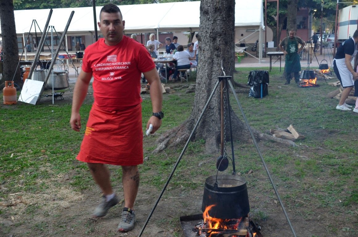 Sve ih je pozdravio zamjenik gradonačelnika grada Belišća Domagoj Varžić, a voditeljica programa Zdravka Majdenić predstavila je stručni ocjenjivački sud u kojem su bili prof. kulinarstva Jelica Černi, šef kuhinje hotela Osijek Tomica Đukić, koji se brinuo i o meniju naše nogometne reprezentacije na Svjetskom prvenstvu, te šef kuhinje hotela Waldinger Miroslav Sili. Uz njihove zadnje upute, majstori kotlića su počeli s pripremom čobanca, a da i kuhanje i druženje prođe u što zabavnijem tonu, pobrinuli su se tamburaški sastavi Traženi i Veritas te članovi KUD-a Šokadija Bocanjevci. U središtu Belišća se mogao pogledati i prigodan gospodarski sajam, na kojem su sudjelovali naši OPG-ovi i udruge. Nakon kušanja svih predanih uzoraka, stručni ocjenjivački sud odlučio je kako je najbolji čobanac skuhao Berislav Franjić iz Bizovca, drugo je mjesto osvojio Gordan Soldo, a treće Perica Borić. Prigodne plakete i nagrade im je uručio zamjenik gradonačelnika Domagoj Varžić. Druženje je i nakon večere i proglašenja najboljih majstora kotlića nastavljeno uz dobru atmosferu do kasnih večernjih sati.