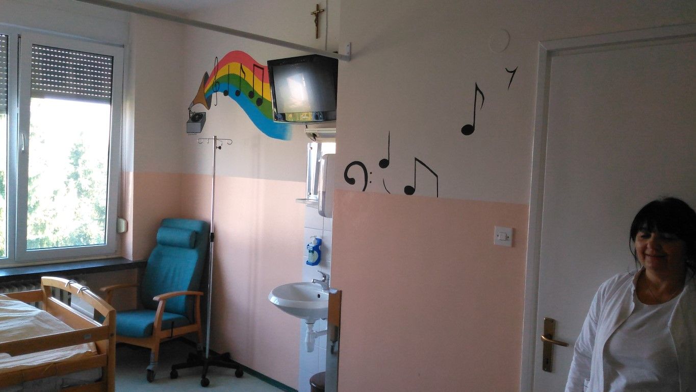 Posebno nas se dojmilo rodilište i odjel pedijatrije koji su oslikali volonteri udruge „Otvoreno srce“ iz Našica. Na odjelu je i igraonica za djecu, fotelje i kreveti za majke dojilje koje mogu biti s djecom, a sobe za veću djecu opremljene su i televizorima. U bolnici postoji i knjižni kutak u kojoj su mnoge knjige na raspolaganju bolesnicima i djelatnicima, a jedanputa tjedno radi i knjižničarka iz Gradske knjižnice Našice. Inače, bolnica je otvorena volonterima koji svojim aktivnostima unutar bolnice doprinose povezanosti između osoblja i bolesnika. Svojim prisustvom boravak u bolnici svakom oboljelom čine lakšim, a djelatnicima pružaju podršku.