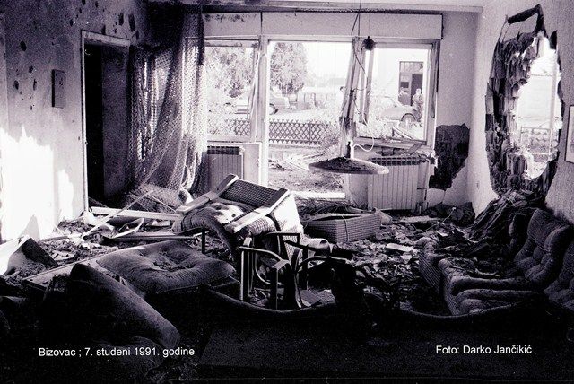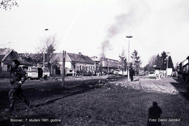 Nedugo nakon počinjenog napada, kada je centar Bizovca izgledao poput prizora iz nekog futurističkog filma, sve strahote snimljene su policijskim video kamerama, a službeni vojni fotograf, Darko Jančikić, snimio je zastrašujuće prizore, koji nas na fotografijama danas podsjećaju na taj tužni dan kada je Bizovac brojeći mrtve i ranjene nad njihovim sudbinama, zaplakao.