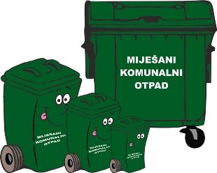 - miješanog komunalnog otpada (sav ostali neiskoristivi otpad: otpad od pometanja i usisavanja, upotrebljene vrećice od usisavača, higijenski proizvodi (pelene, ulošci, vata), celofan, prljavi i masni papir, folija i sl)
