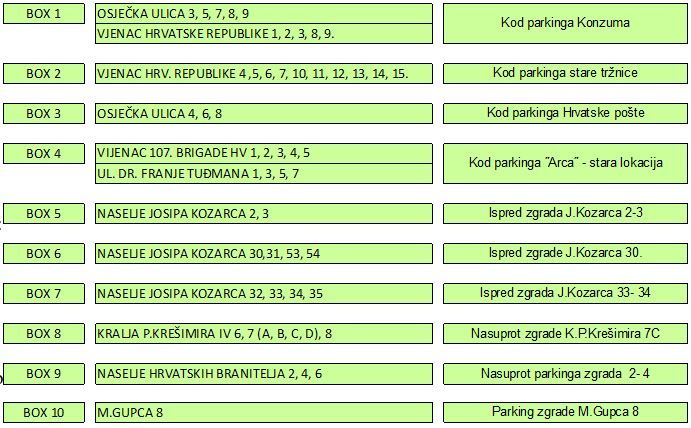 Lokacija box-ova i pripadajućih zgrada kolektivnog stanovanja/korisnika