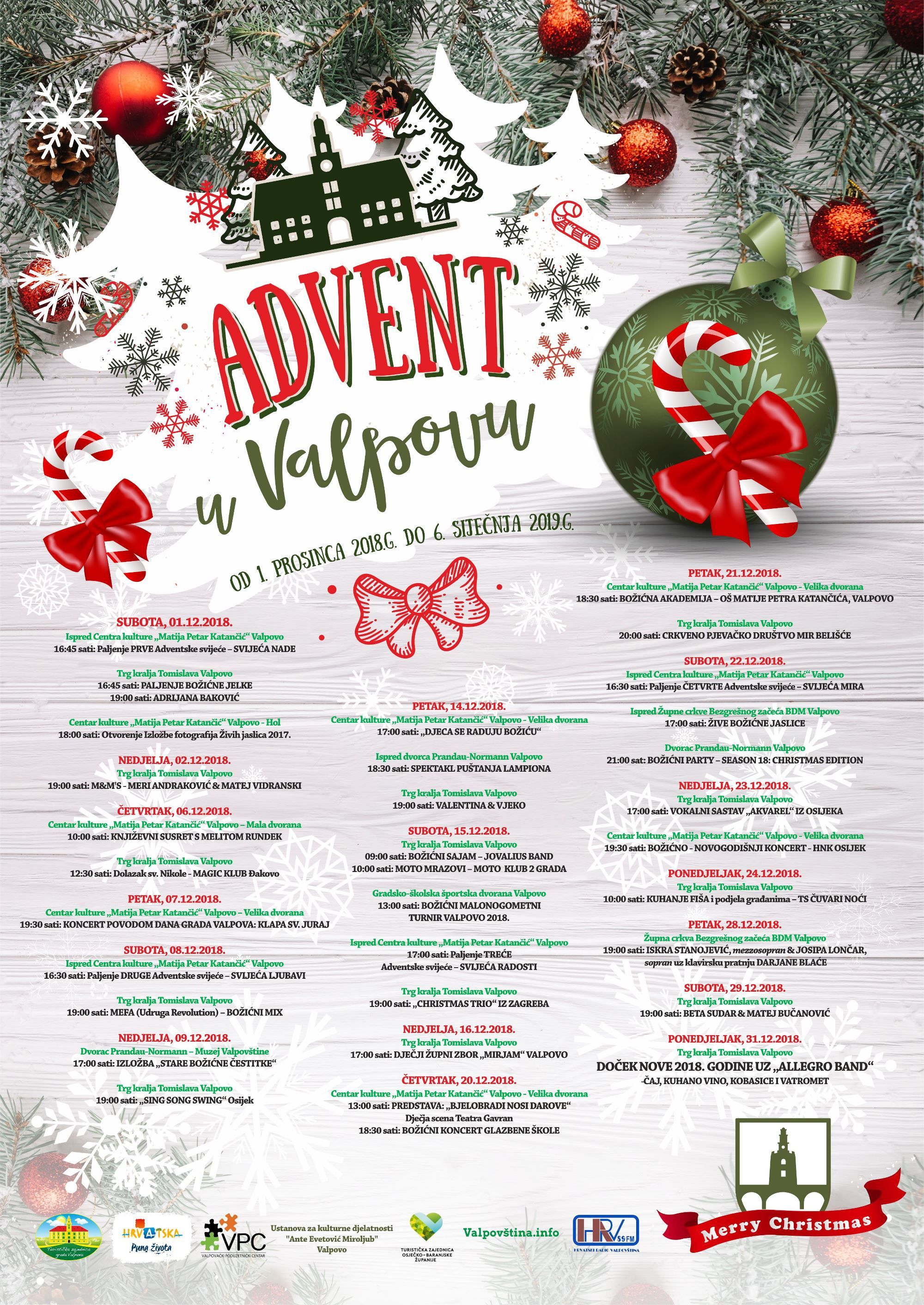 VALPOVO Turistička zajednica Grada Valpova, Valpovački poduzetnički centar i Ustanova za kulturne djelatnosti Ante Evetović Miroljub su uz podršku Hrvatske turističke zajednice i Turističke zajednice Osječko-baranjske županije priredile bogat program gospodarskih, kulturno-umjetničkih, sportskih i turističkih priredbi pod nazivom Advent u Valpovu.