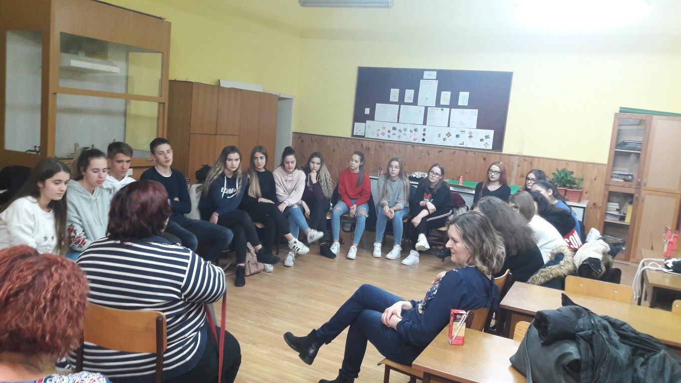 VALPOVO Povodom obilježavanja međunarodnog dana slijepih i slabovidnih osoba, drugi razred ekonomske škole je, zajedno sa svojom razrednicom Monikom Markota, profesoricom informatike Anjom Ćupurdija i pedagoginjom Emom Šimunović, ugostio članove udruge „MI“ iz Valpova.