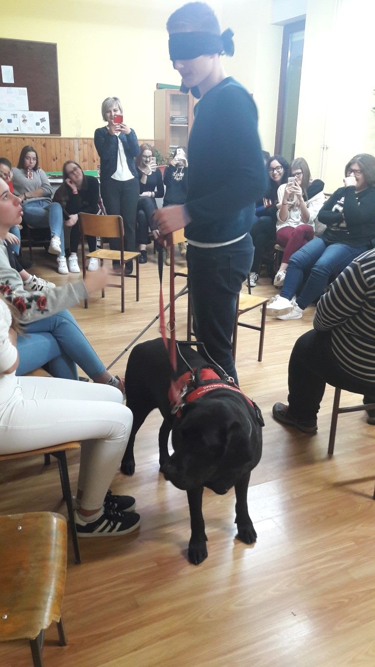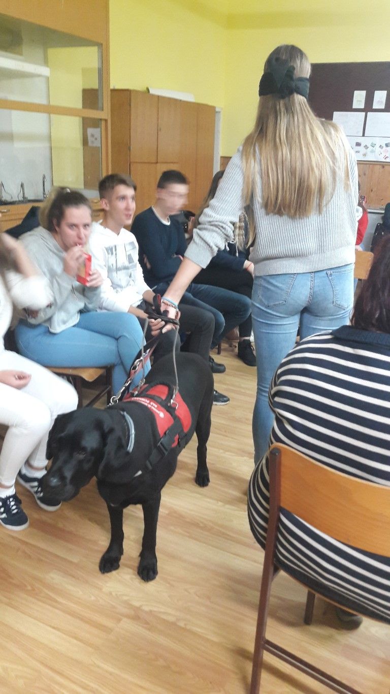 Posebna gošća je bila Maja i njen terapijski pas Longo koji je izazvao oduševljenje kod učenika. Maja je učenicima pokazala svoju vještinu pisanja na stroju Brailleovim pismom, a zatim su se svi natjecali u brzini pisanja.