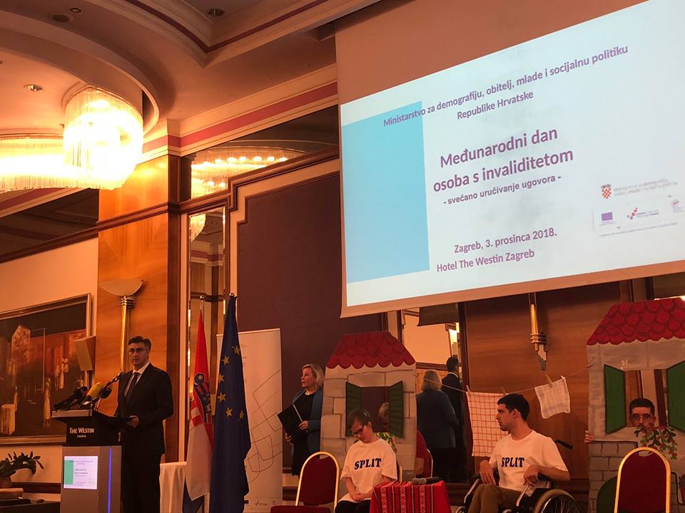 Ovom prigodom udrugama koje pružaju usluge asistencije osobama s invaliditetom uručeni su ugovori u okviru Poziva za provedbu trogodišnjeg programa, a u ime Udruge Zvono iz Belišća ugovor je primila i Mira Anić.