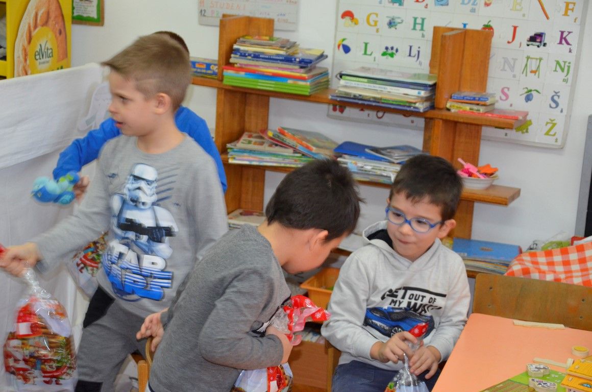 Drage su goste najprije ugostili polaznici Dječjeg vrtića Maza gdje ih je pozdravila zamjenica ravnateljice Mirjana Babić sa suradnicima i djecom. Uslijedila je razmjena darova i naravno, vedro i veselo druženje uz recitacije, pjesme i ples…