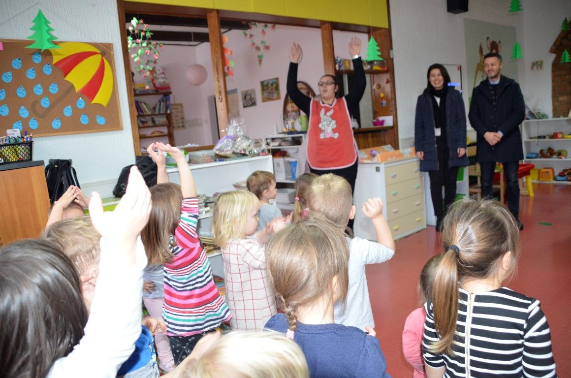 Potom su gosti posjetili Dječji vrtić Moj Bambi gdje su također dočekani uz pjesme i ples te prigodne darove kojima su se najmanji sugrađani u ime ravnateljice Vedrane Kuna i njihovih teta, zahvalili za slatke paketiće i didaktičku opremu koju su primili.