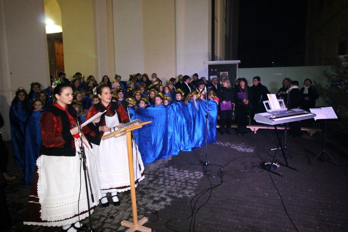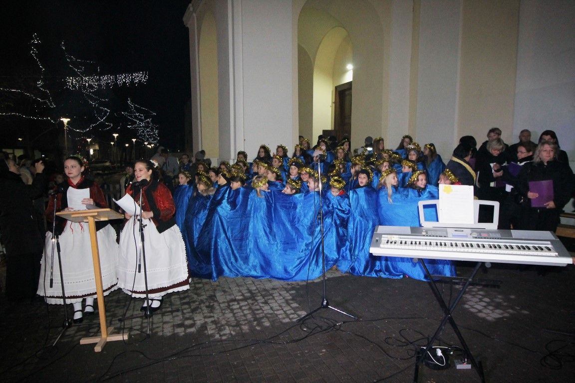 VALPOVO Paljenjem posljednje, četvrte svijeće u stiliziranom adventskom vijencu ispred Centra kulture Matija Petra Katančić, nastavljen je program Adventa u Valpovu.
