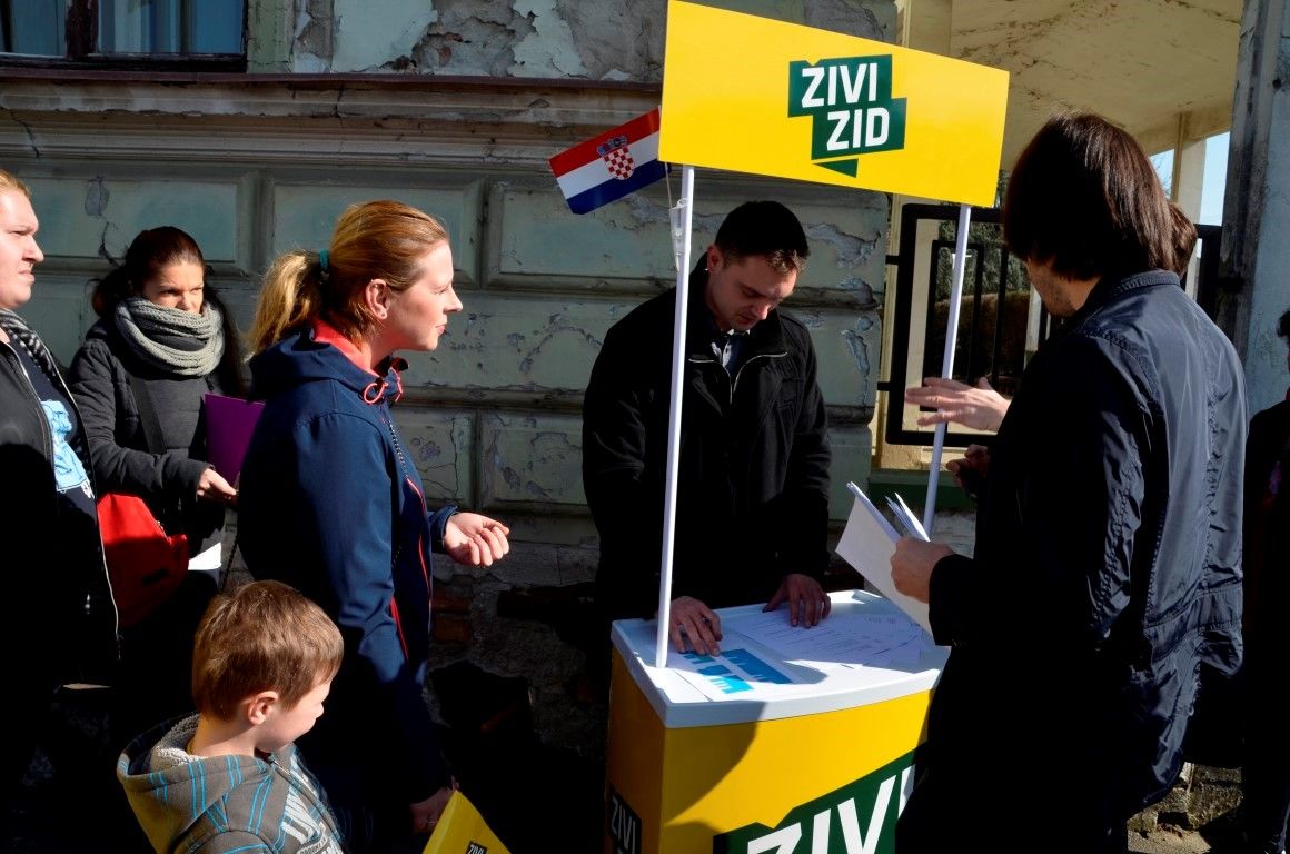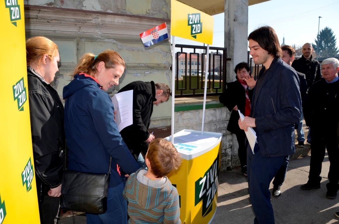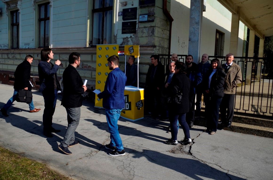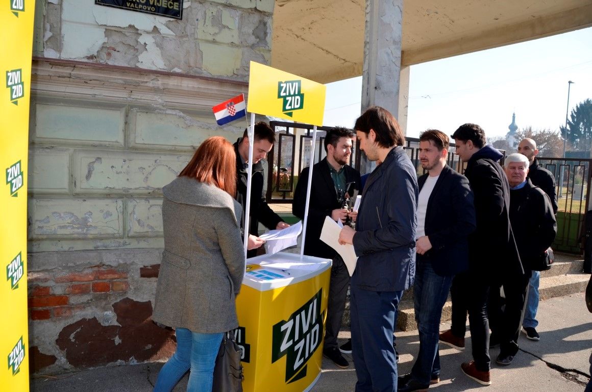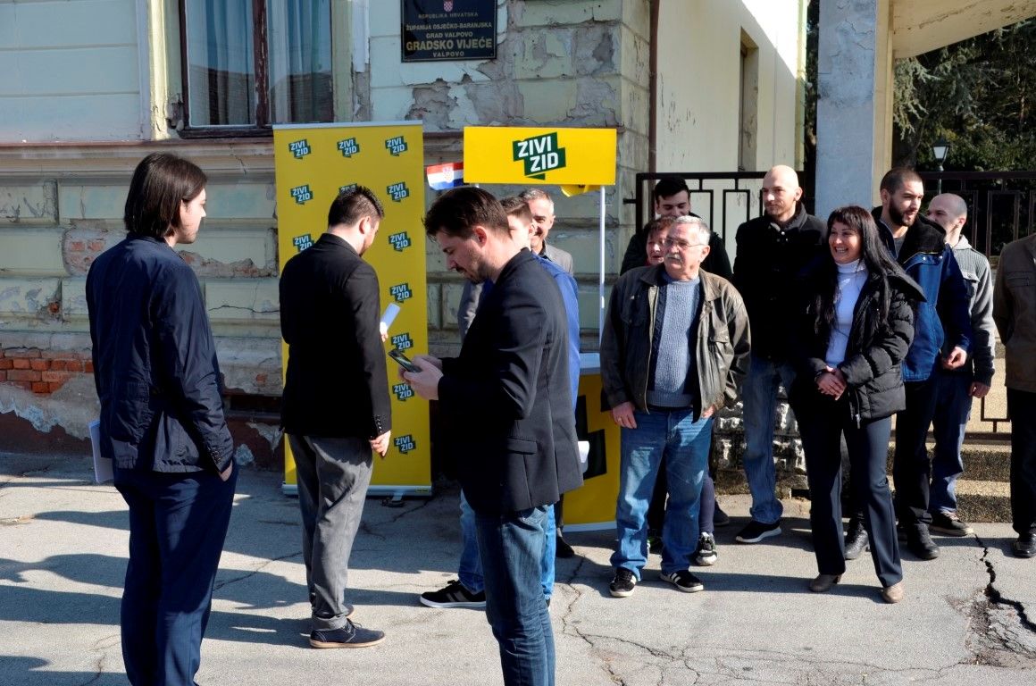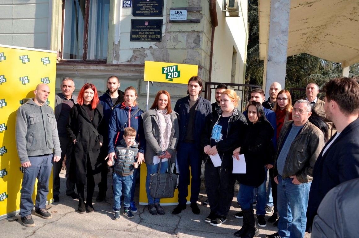 Aktivisti Živog zida i članovi stranke iz Valpova i okolice okupili su se ispred zgrade Gradske uprave, a na početku, vijećnik Gradskog vijeća Marko Tomoković, upoznao je prisutne s nastojanjima da dođe do preciznih podataka o količine iscrpljene nafte i plina iz bušotina na području Grada Valpova. Iznenadio se podatku da se od eksploatacije nafte i plina iz 22 bušotine na tri polja ostvari prihod od 67.000 kuna.