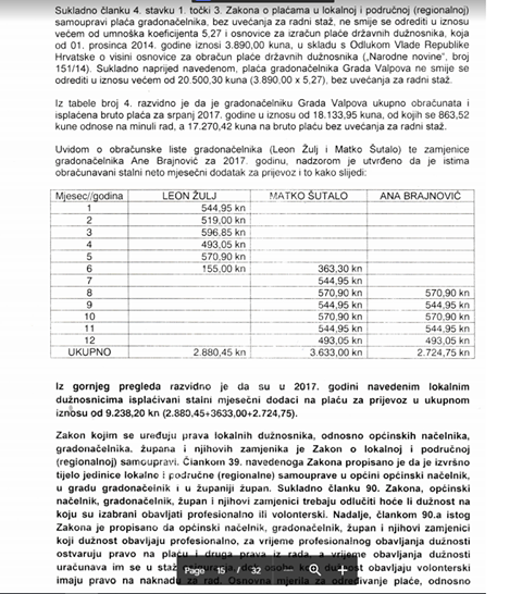 Što se tiče Bruxellesa i proračunskog nadzora, prilažem Vam dio zapisnika proračunskog nadzora koji dokazuje da su se proračunska sredstva Grada Valpova citiram: "NEZAKONITO KORISTILA." Proračunskim nadzorom je utvrđeno da je Matku Šutalu, Ani Brajnović i Leonu Žulju isplaćivan stalni mjesečni neto dohodak za prijevoz iako na to NISU IMALI PRAVO.