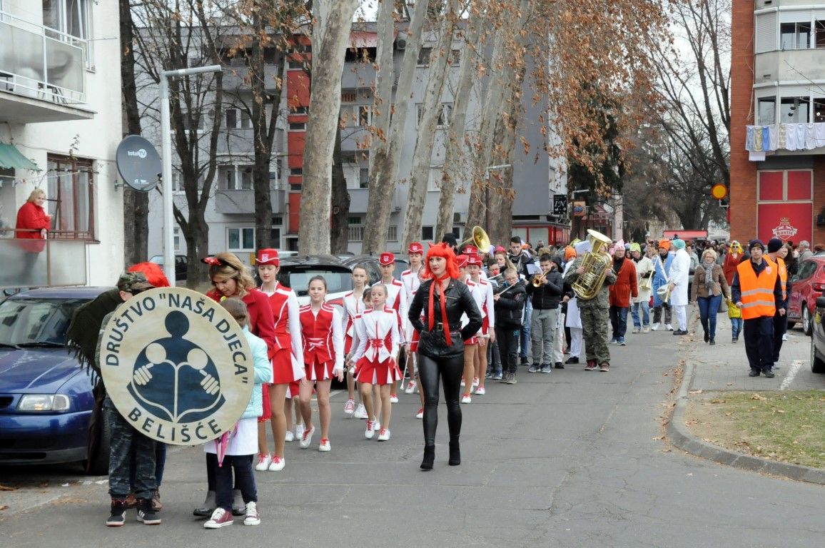 Društvo Naša djeca je ove subote, 2. ožujka, u suradnji s Gradom Belišćem i Turističkom zajednicom grada Belišća bilo organizator ovog veselog događaja. Iako su u ranim prijepodnevnim satima prijetili tmurni oblaci, ni pokoja kap kiše nije spriječila okupljanje u središtu grada odakle je maskirana povorka krenula prema nastavno sportskoj dvorani. Povorku su predvodile zamjenica gradonačelnika Belišća Ljerka Vučković i predsjednica Društva Naša djeca, a iza njih su bile Belišćanske mažoretkinje, Gradski puhački orkestar Belišće, Puhački orkestar DVD-a Valpovo te maskirane skupine iz Dječjeg vrtića Maslačak i belišćanske osnovne škole.
