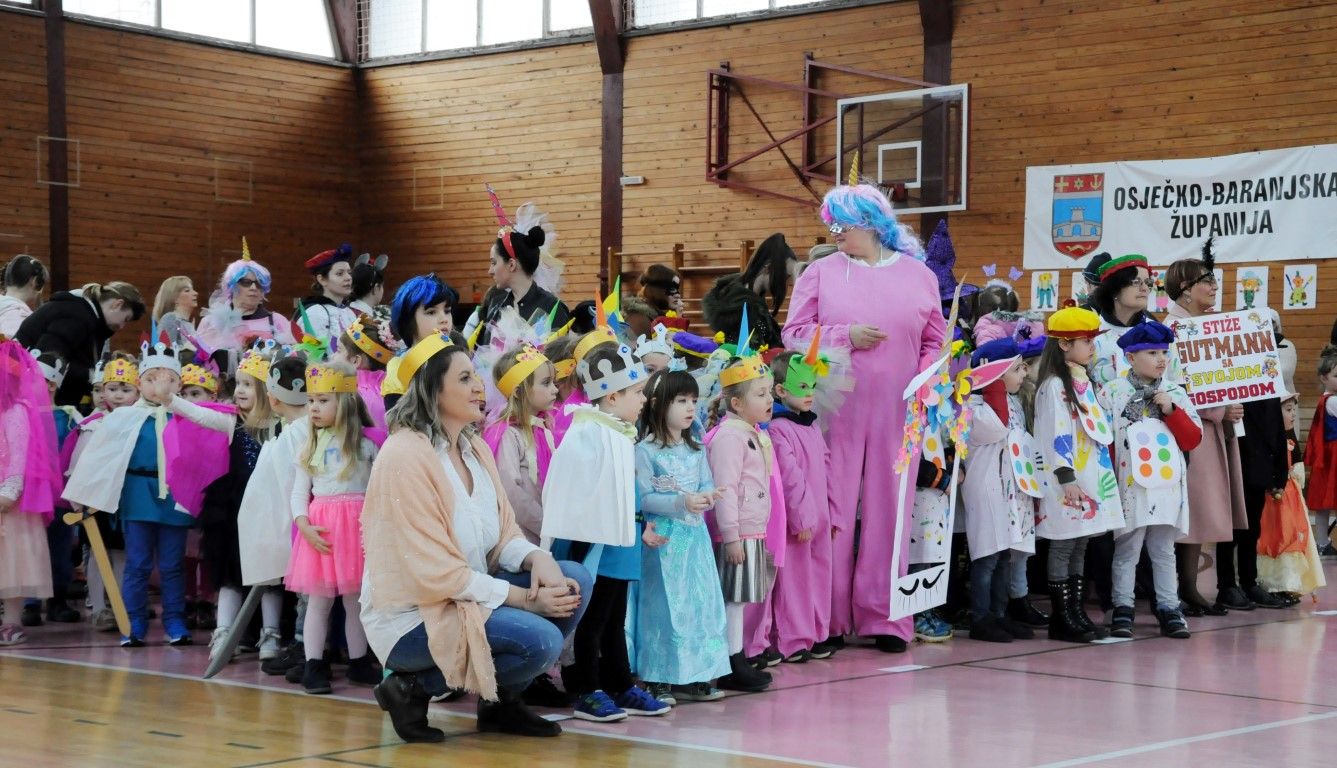 Nakon što su mali Belišćani prošetali središtem grada, u dvorani je uslijedio prigodan program koji je, kako to i priliči takvom trenutku, započeo nakon što je zamjenica gradonačelnika Ljerka Vučković predala ključeve grada voditeljici programa Moniki Đogaš, čime je započela dječja vlast u Belišću. Nakon predstavljanja svih maskiranih skupina, program je nastavljen uz nastup belišćanskih i valpovačkih puhača, Belišćanskih mažoretkinja i učenika 3.d razreda. Prije plesa pod maskama, predstavljena je i maskirana komisija – ravnateljica Centra za kulturu Sigmund Romberg Tea Kozina, predstavnica TZ grada Belišća Mirjana Klen, voditeljica Belišćanskih mažoretkinja Irena Fešiš, predstavnica Likovne udruge Bel – art Vanja Eberl i predstavnica DND-a Belišće Doris Habjanović. Njihov je zadatak bio izabrati najkreativnije, najnasmijanije i najrasplesanije skupne i pojedinačne maske, što im je, kako su same rekle, bio jako težak zadatak, jer su sva belišćanska djeca bila baš onakva kakva djeca trebaju biti – najljepša!
