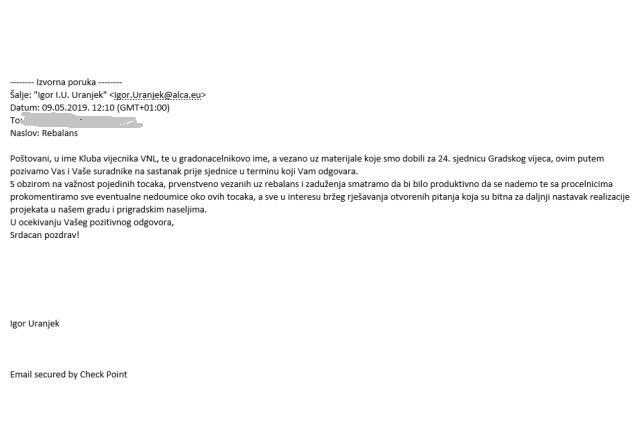 VALPOVO Predsjednik kluba vijećnika Igor Uranjek u ime Valpovačke nezavisne liste uputio je dopis putem emaila predsjedniku Gradskog vijeća Grada Valpova Dejanu Pisačiću gdje ga je pozvao na suradnju i radni sastanak kako bi se riješile sve nedoumice oko ključnih točaka vezanih uz rebalans i zaduženje Grada Valpova u svrhu realizacije projekata koji su u interesu i na dobrobit stanovnika Valpova i prigradskih naselja.