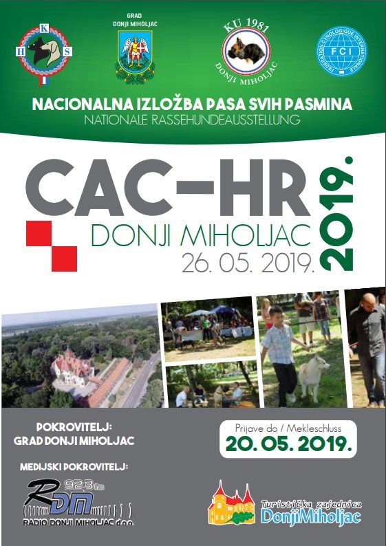 DONJI MIHOLJAC U nedjelju, 26. svibnja 2019. u Donjem Miholjcu se održava Nacionalna izložba pasa svih pasmina CAC HR-2019, u organizaciji Kinološke udruge 1981 Donji Miholjac.
