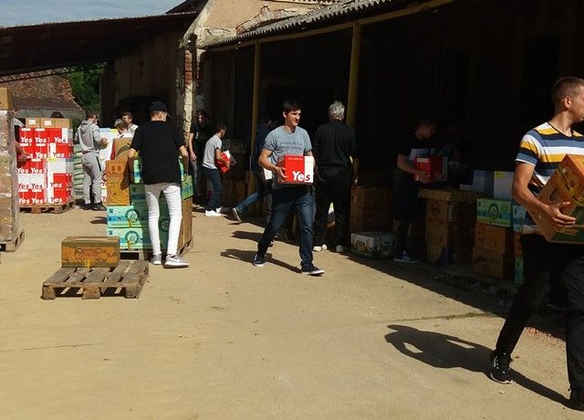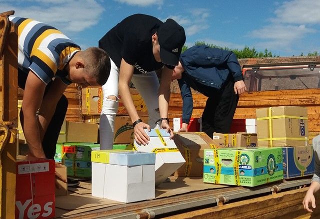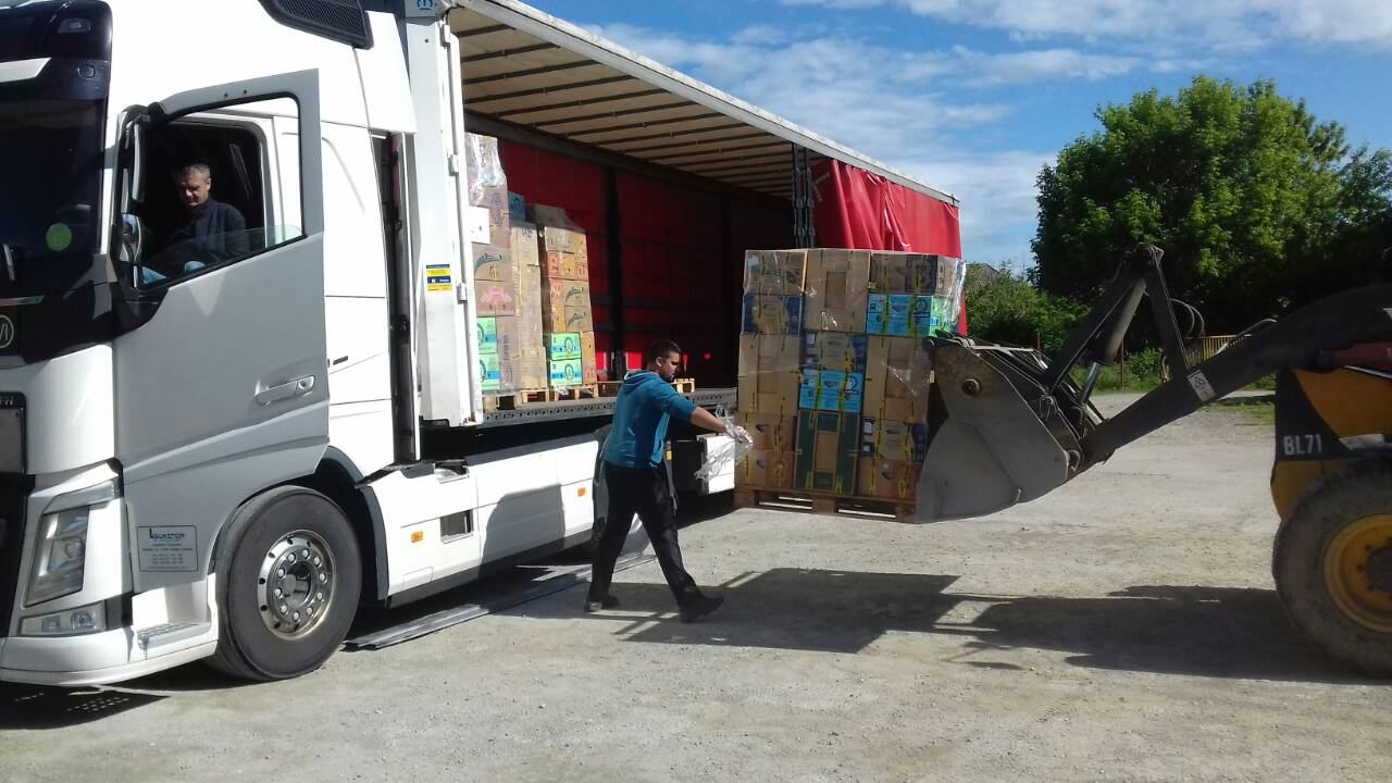 Ukupno je bilo isporučeno 7000 kg materijala u 10 paleta (oko 400 kutija). Za istovar smo zatražili prikladan prostor koji nam je ustupio gospodin Stipić, vlasnik tvrtke Gebruder, kao i potreban viličar. Također smo angažirali domare naše škole, a zatražili smo pomoć i naših učenika koji su se rado odazvali.