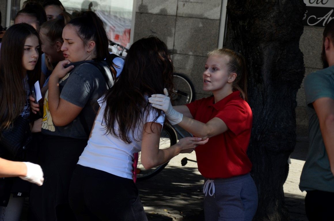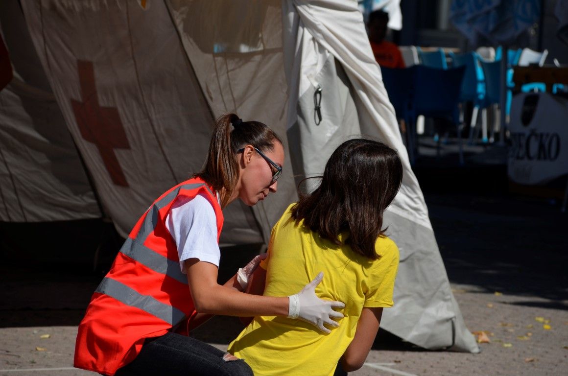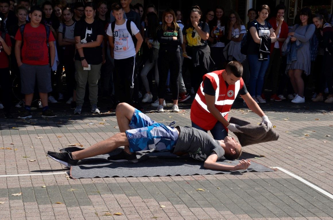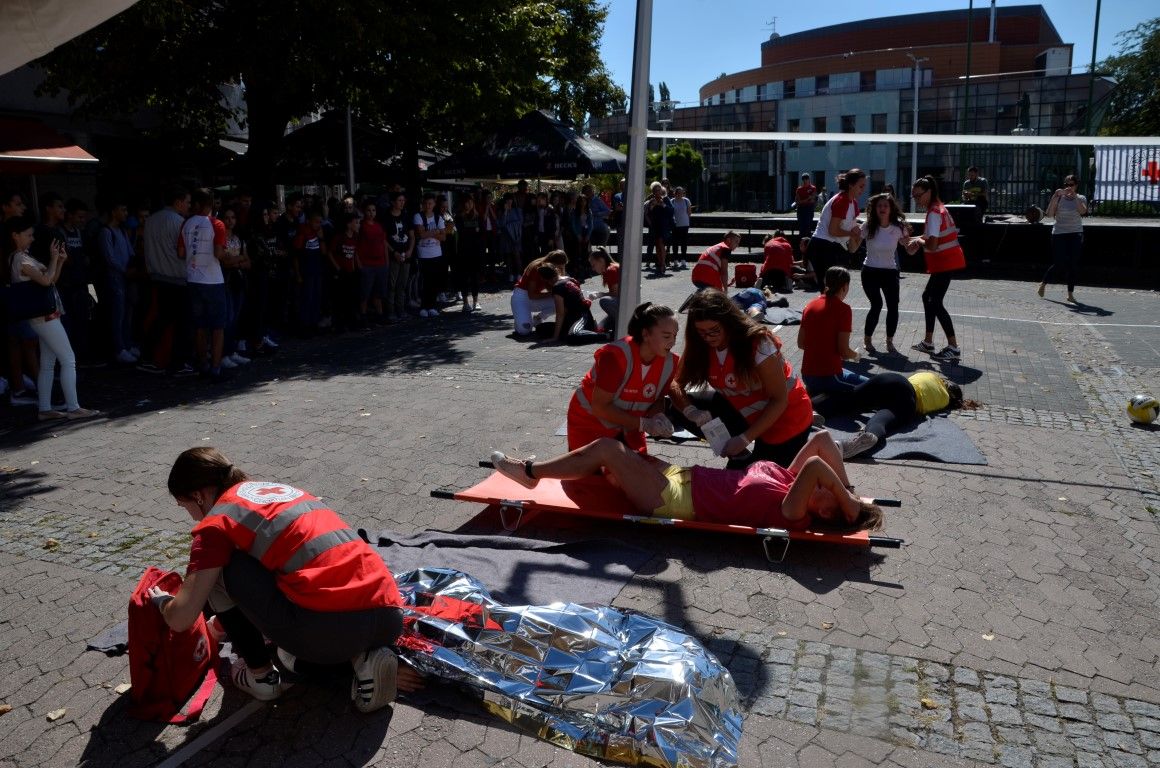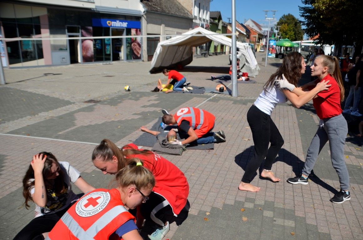 Visoku razinu uvježbanosti članova Kluba mladih Gradskog društva Crvenog križa, mladi su volonteri pokazali u pretpostavljenim uvjetima snažnog potresa koji je prekinuo uobičajene dnevne aktivnosti. U realističnim uvjetima, koji su na trenutak izazivali nelagodu kod promatrača, ekipe su pokazale spretnost koja ulijeva nadu da bi tako mogli postupati i u stvarnim nesretnim slučajevima.