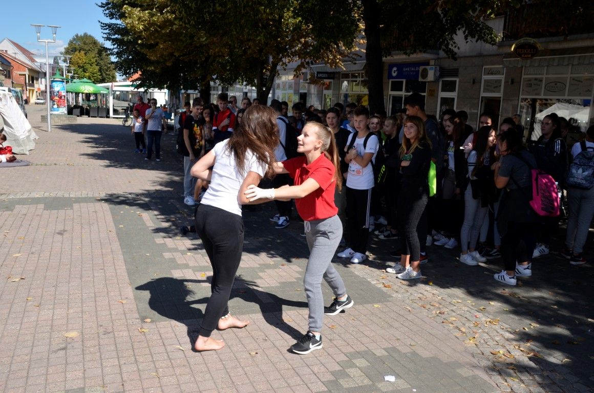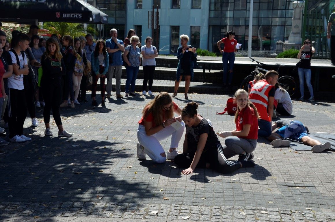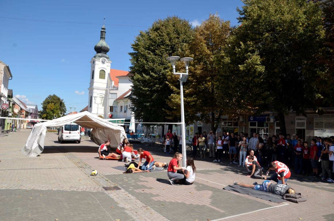 Vježba je na središnjem gradskom trgu provedena u povodu sutrašnjeg Svjetskog dana prve pomoći.