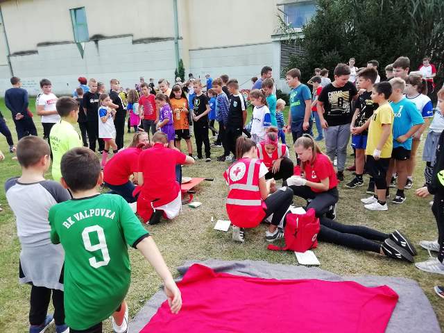 VALPOVO U subotu, 28.rujna 2019. godine, mladi Gradskog društva Crvenog križa Valpovo održali su pokaznu vježbu prve pomoći na Međunarodnom memorijalnom rukometnom turniru Zlatko Ivić – Čiva u Valpovu, koji se održava u znak sjećanja na poginulog rukometaša i hrvatskog branitelja iz Domovinskog rata.