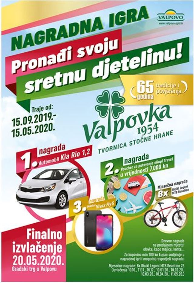 Nagradna igra traje do mjeseca svibnja 2020.godine i uključuje bogate mjesečne i finalne nagrade. Samo izvlačenje glavne nagrade, automobila Kia Rio 1,2, predviđeno je 20. svibnja 2020.godine na Gradskom trgu u Valpovu. Sudionici nagradne igre su kupci proizvoda Tvornice stočne hrane Valpovka u svim prodavaonicama koje te proizvode imaju u svom asortimanu.