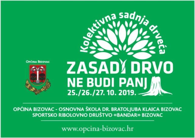 U suradnji s Osnovnom školom dr. Bratoljuba Klaića u Bizovcu i vrijednim članovima Sportsko ribolovnog društva „Bandar“ Bizovac 25., 26., i 27. listopada, na prostorima kod matične škole i područnim školama u Brođancima, Cretu, Habjanovcima te Samatovcima i okolo vodenih površina bizovačkog bajera zasadit će se oko dvije stotine različitih vrsta mladih sadnica drveća.