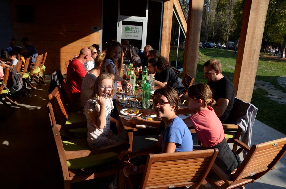 Uposlenici i volonteri pod vodstvom Adriane Blažević, direktorice Zlatne grede, izletnicima su osigurali sjajne uvjete za provod u prirodi u što se uklopio i restoran Zlatna Greda pustaraškim menijem, na kome je dominantno mjesto pripalo perkeltu od divljači i sezonskim jelima od ribe, ali po onoj – za svakoga ponešto, nudila su se i jela s roštilja pa i ona namijenjena vegetarijancima.