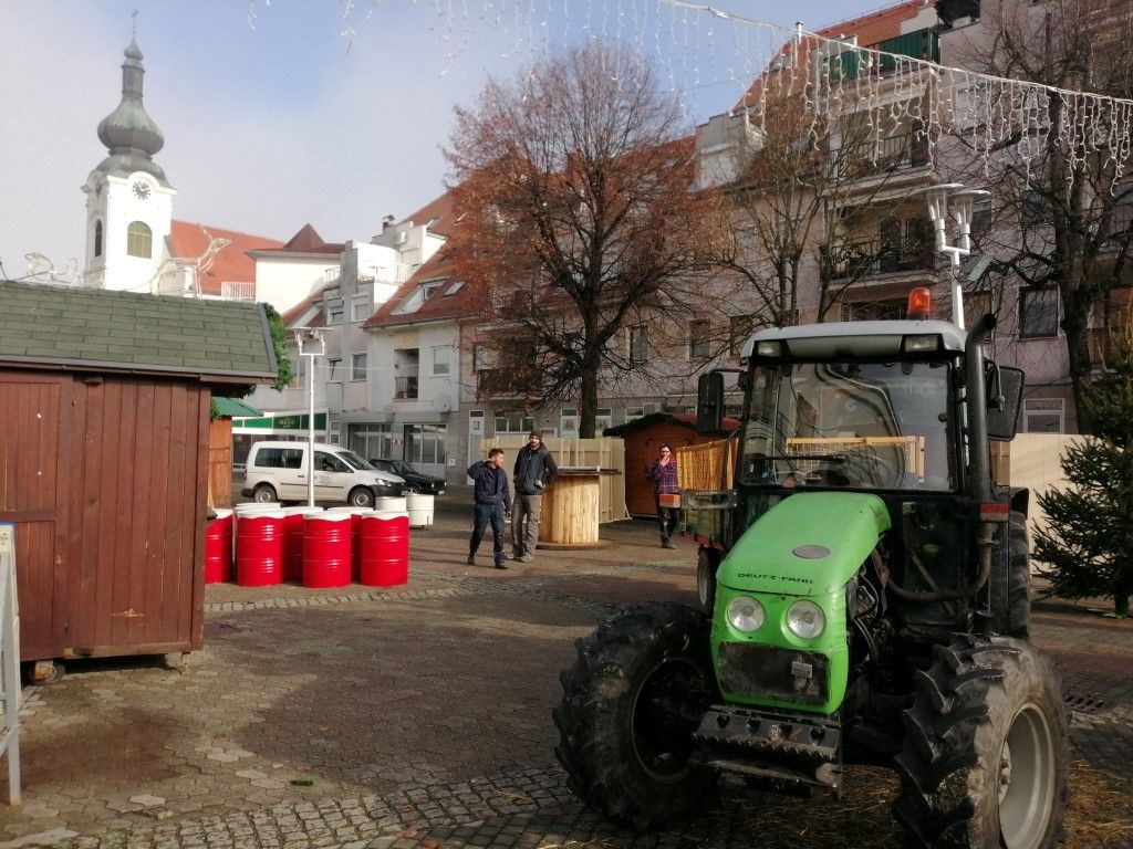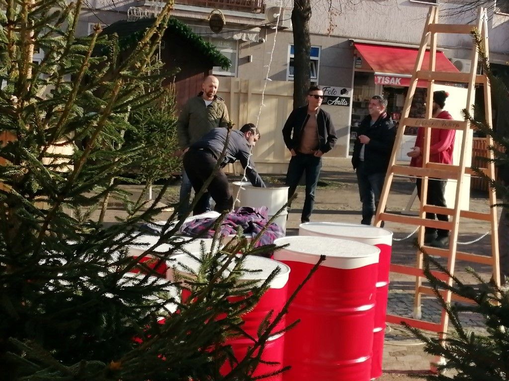 VALPOVO Današnje lijepo, sunčano prijepodne stvorilo je prekrasan ambijent za podizanje i uređenje adventskog sela u središtu grada, na Trgu kralja Tomislava.