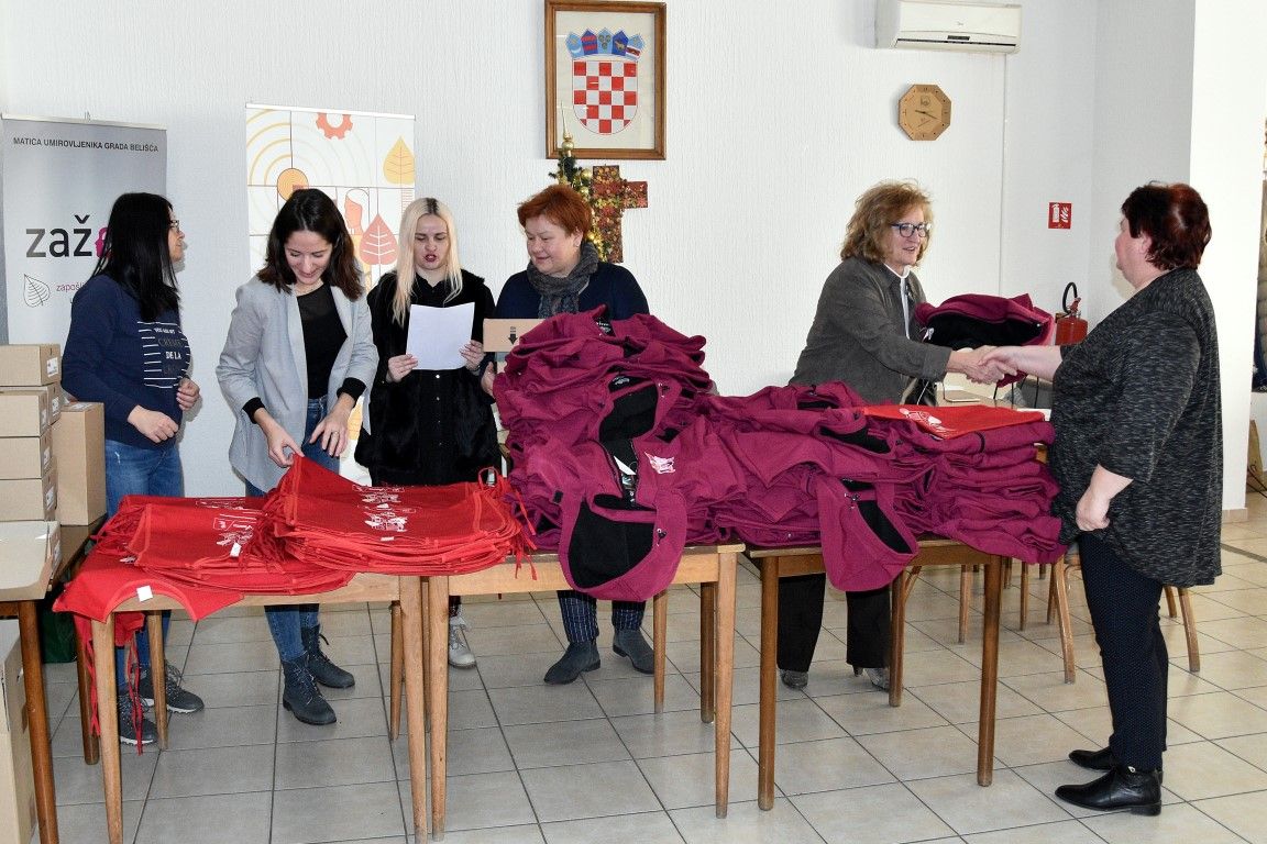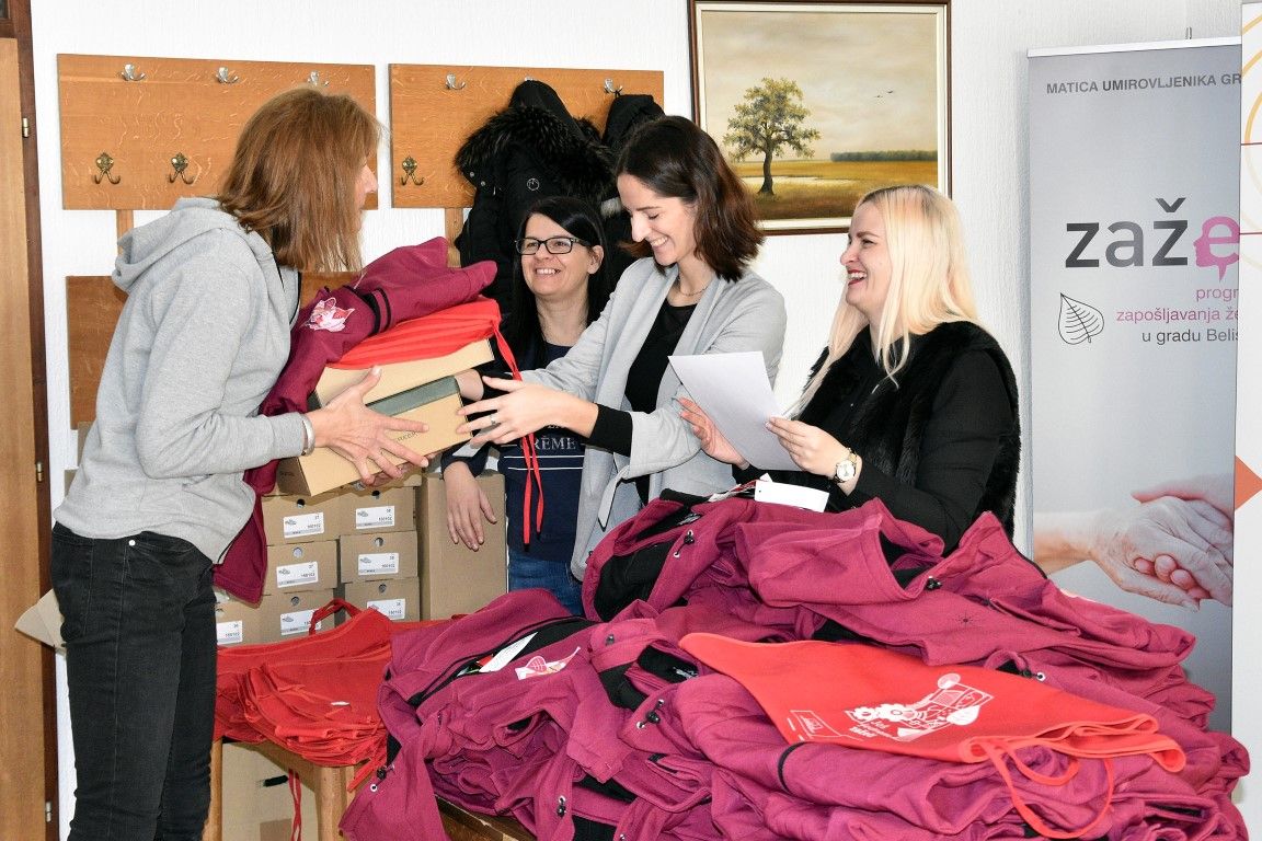 Danas im je, u Matici umirovljenika grada Belišća podijeljena radna odjeća, obuća i oprema. Opremu su podijelile zamjenica gradonačelnika grada Belišća Ljerka Vučković, predsjednica Matice umirovljenika Marija Ilić te koordinatorica aktivnosti u projektu "Još jednom zaželi" Katarina Bošnjak, sa suradnicama.