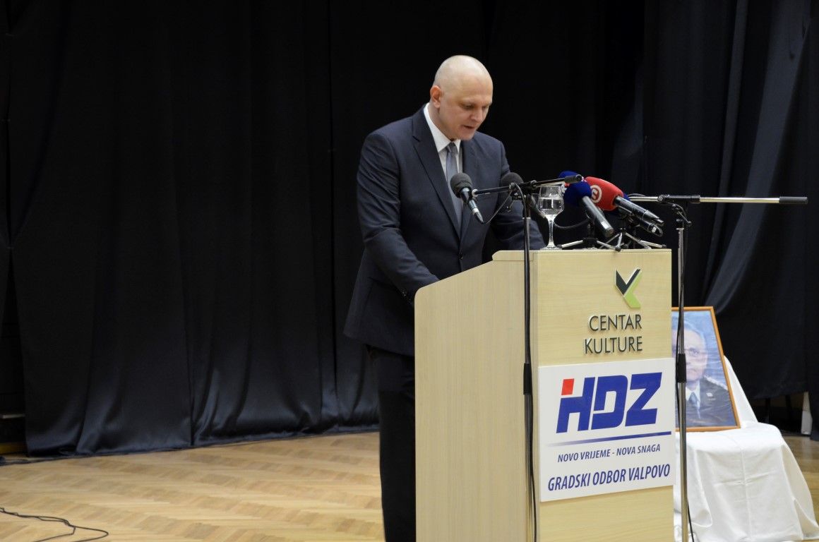 Podsjetio je kako je HDZ u Valpovu osnovan 20. siječnja 1990. godine, i posebno naglasio prisutnost utemeljitelja na svečanosti, a s posebnim se pijetetom obratio i braniteljima i njihovim obiteljima.
