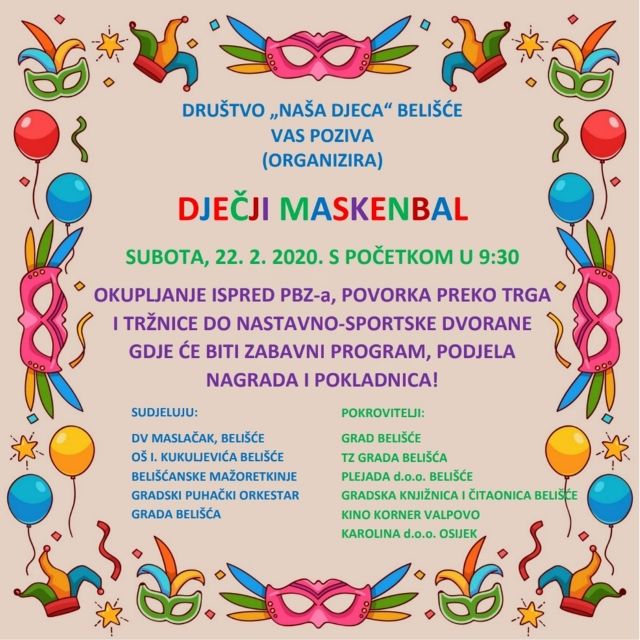 BELIŠĆE I ove godine Društvo Naša djeca Belišće organizira Dječji maskenbal.