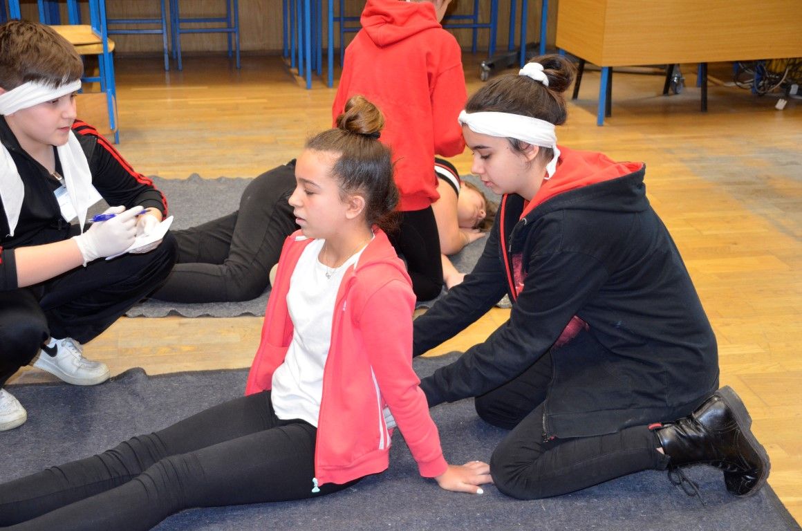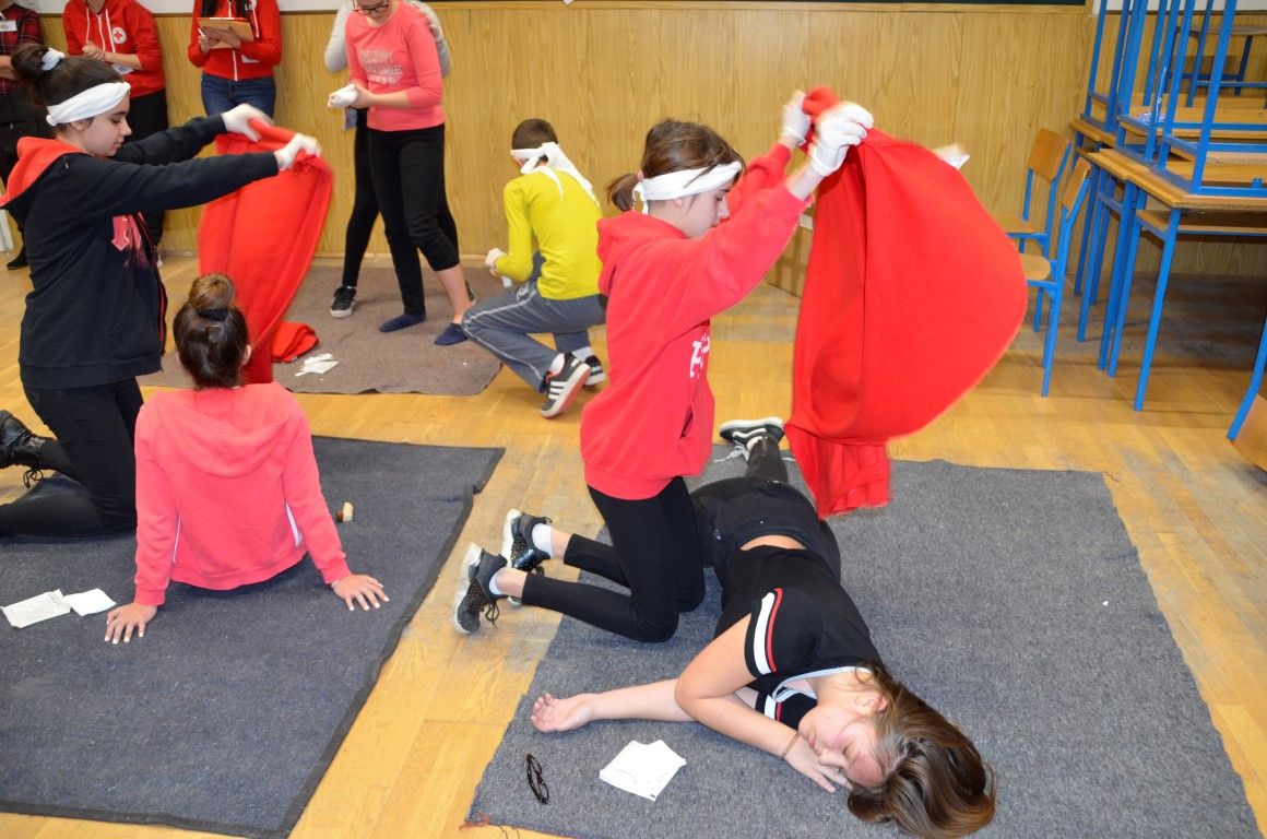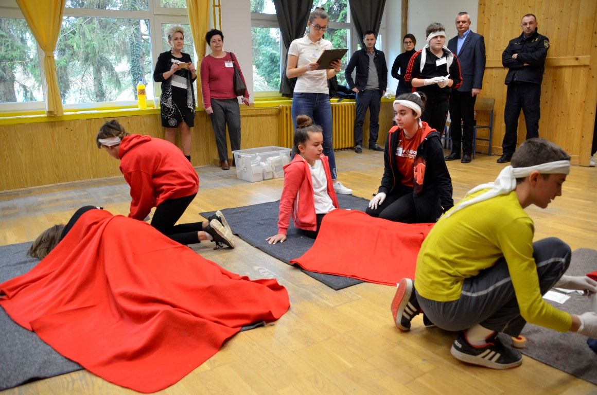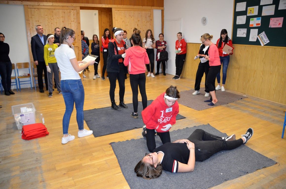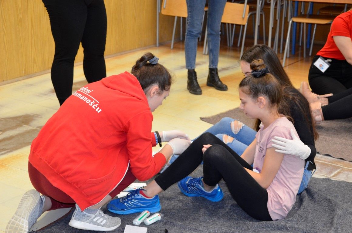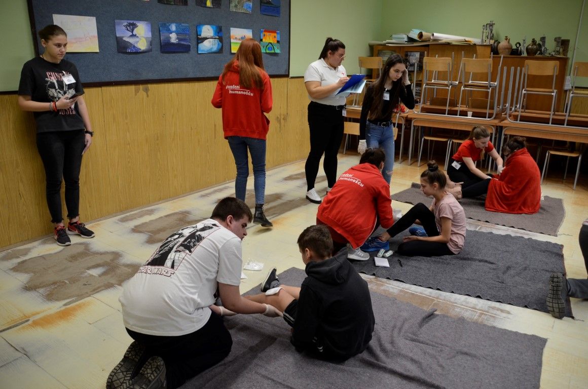 -Pišu četiri testa i pruža se prva medicinske pomoć na dva radilišta s po tri ozlijeđene osobe. Testovi su iz znanja o Međunarodnom pokretu Crvenog križa i Crvenog polumjeseca, Hrvatskom Crvenom križu, Međunarodnom humanitarnom pravu i ljudskim pravima i provjera znanja prve medicinske pomoći, pojasnila je Sanela Buljan voditeljica Kluba mladih Crvenog križa Valpovo.