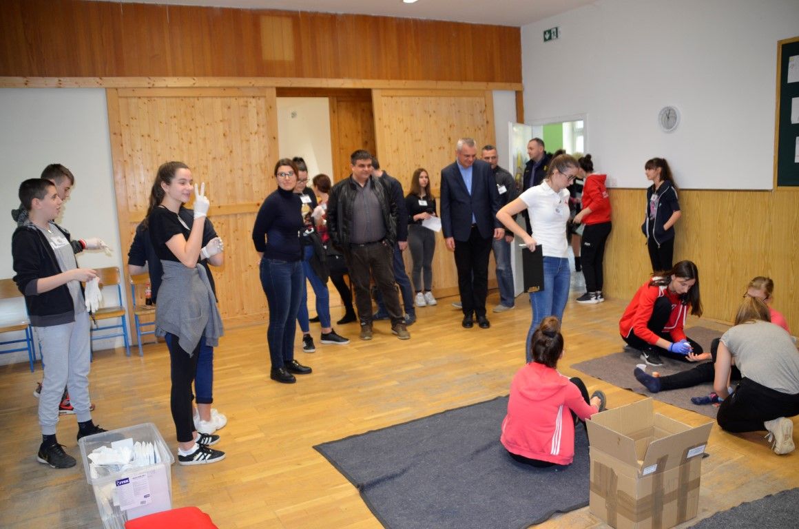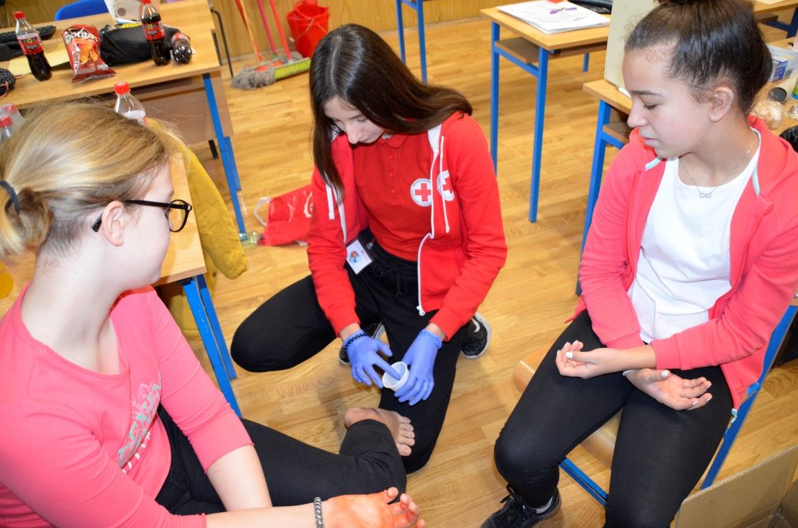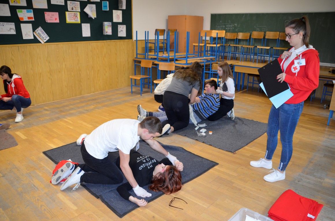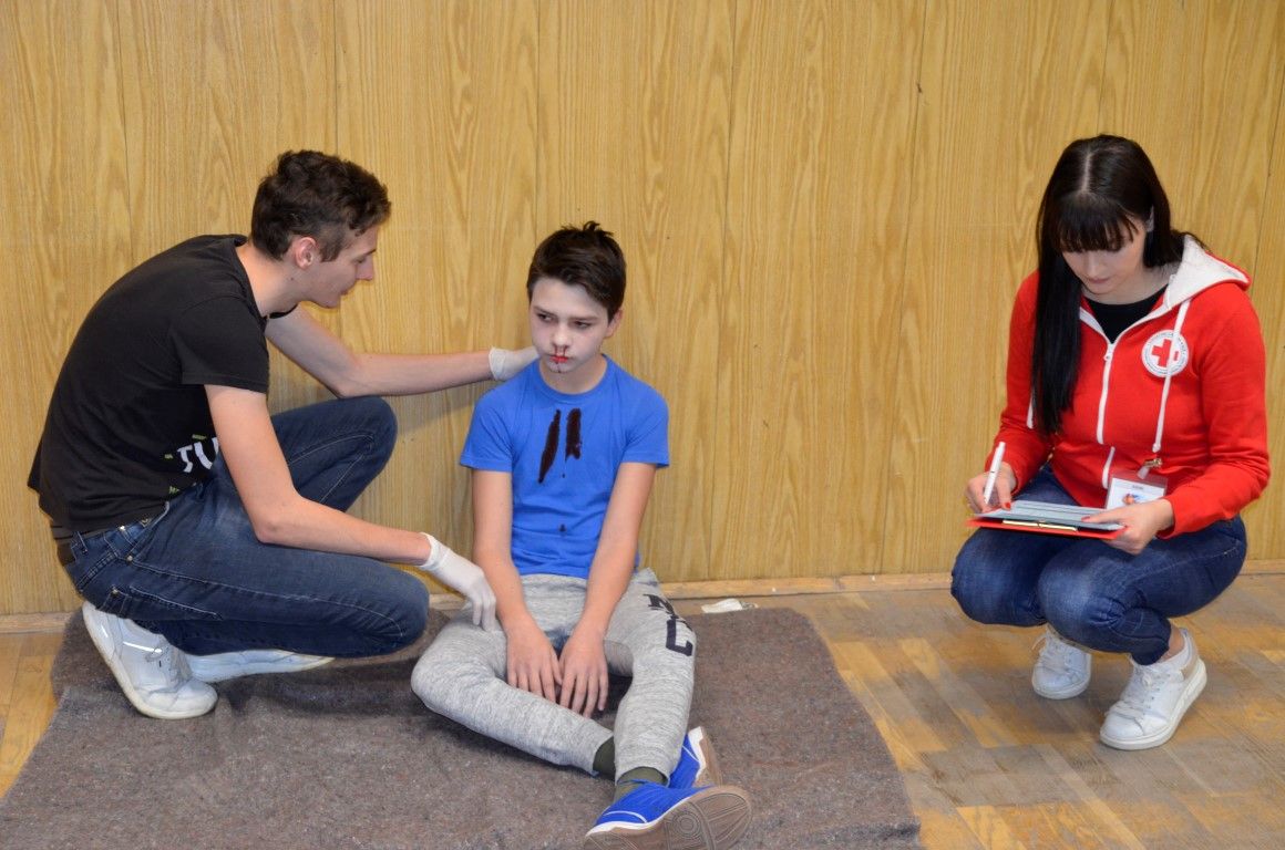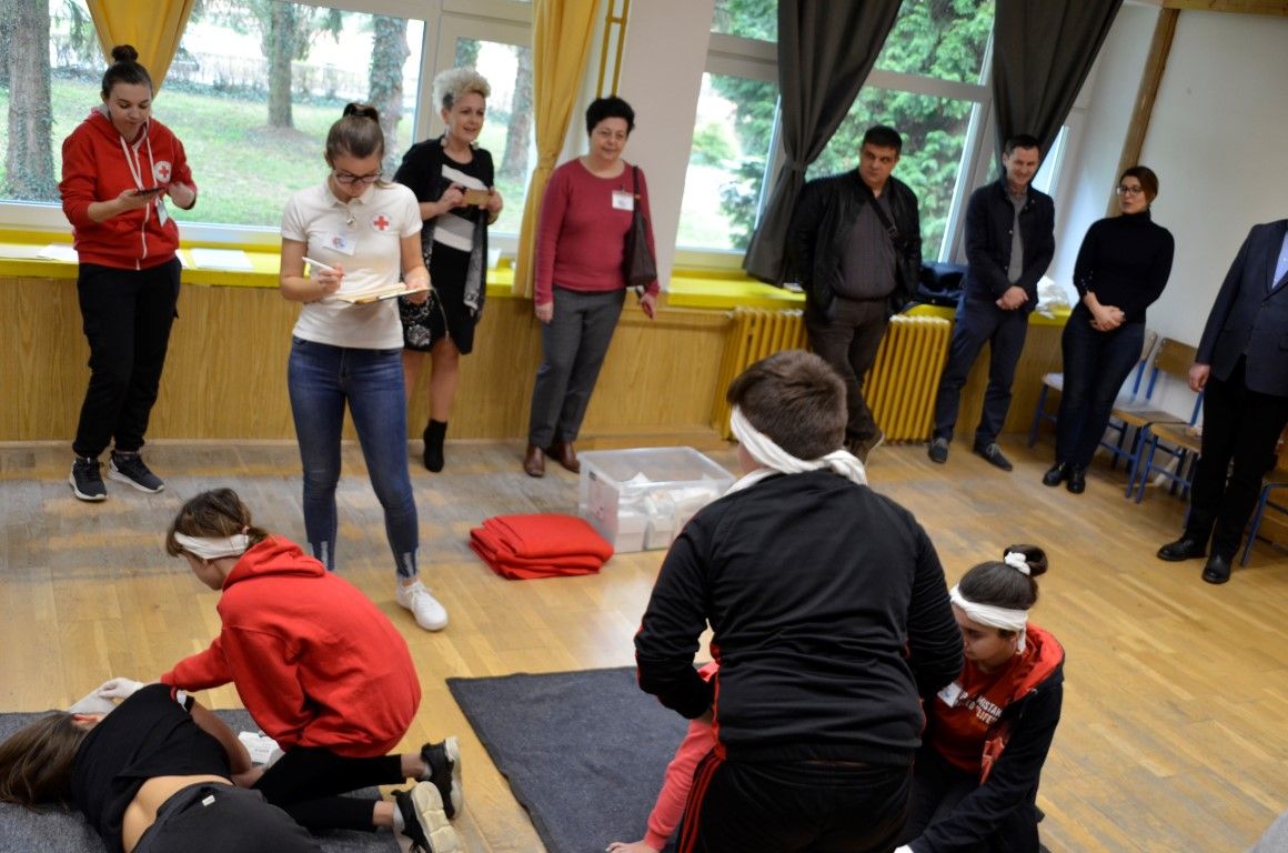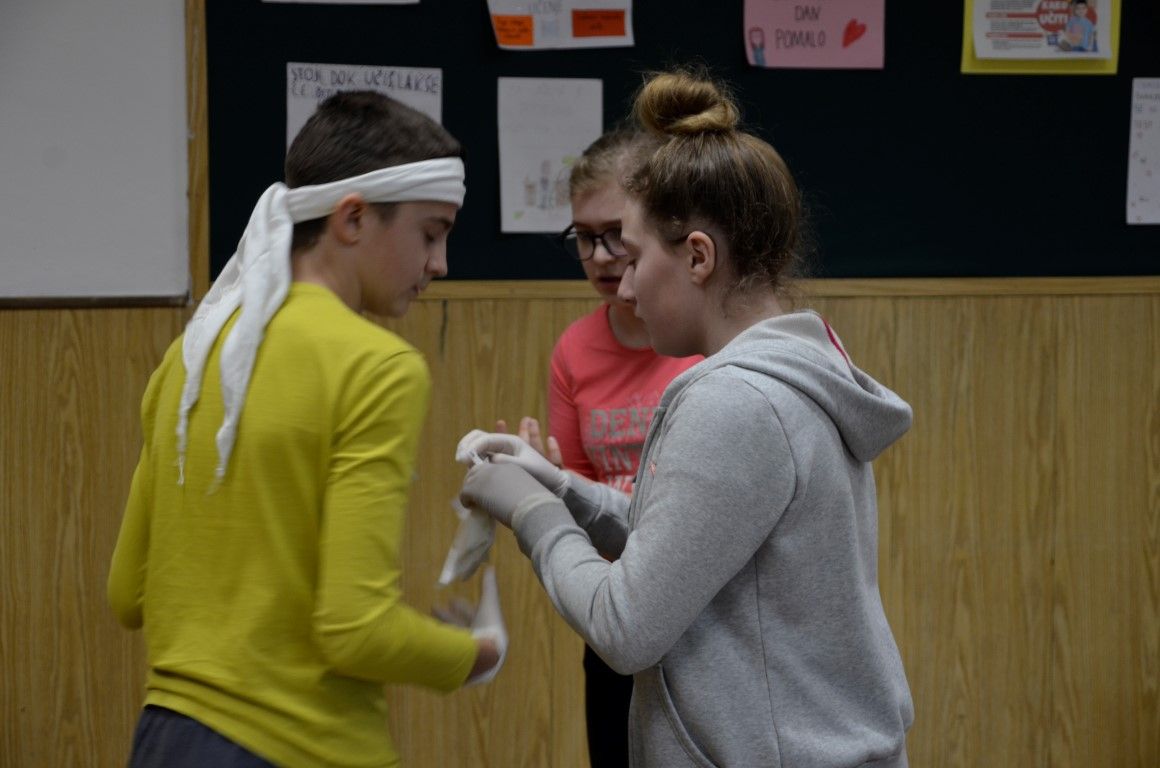 -Pišu četiri testa i pruža se prva medicinske pomoć na dva radilišta s po tri ozlijeđene osobe. Testovi su iz znanja o Međunarodnom pokretu Crvenog križa i Crvenog polumjeseca, Hrvatskom Crvenom križu, Međunarodnom humanitarnom pravu i ljudskim pravima i provjera znanja prve medicinske pomoći, pojasnila je Sanela Buljan voditeljica Kluba mladih Crvenog križa Valpovo.