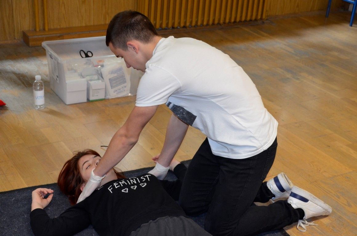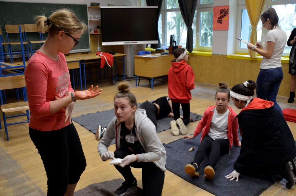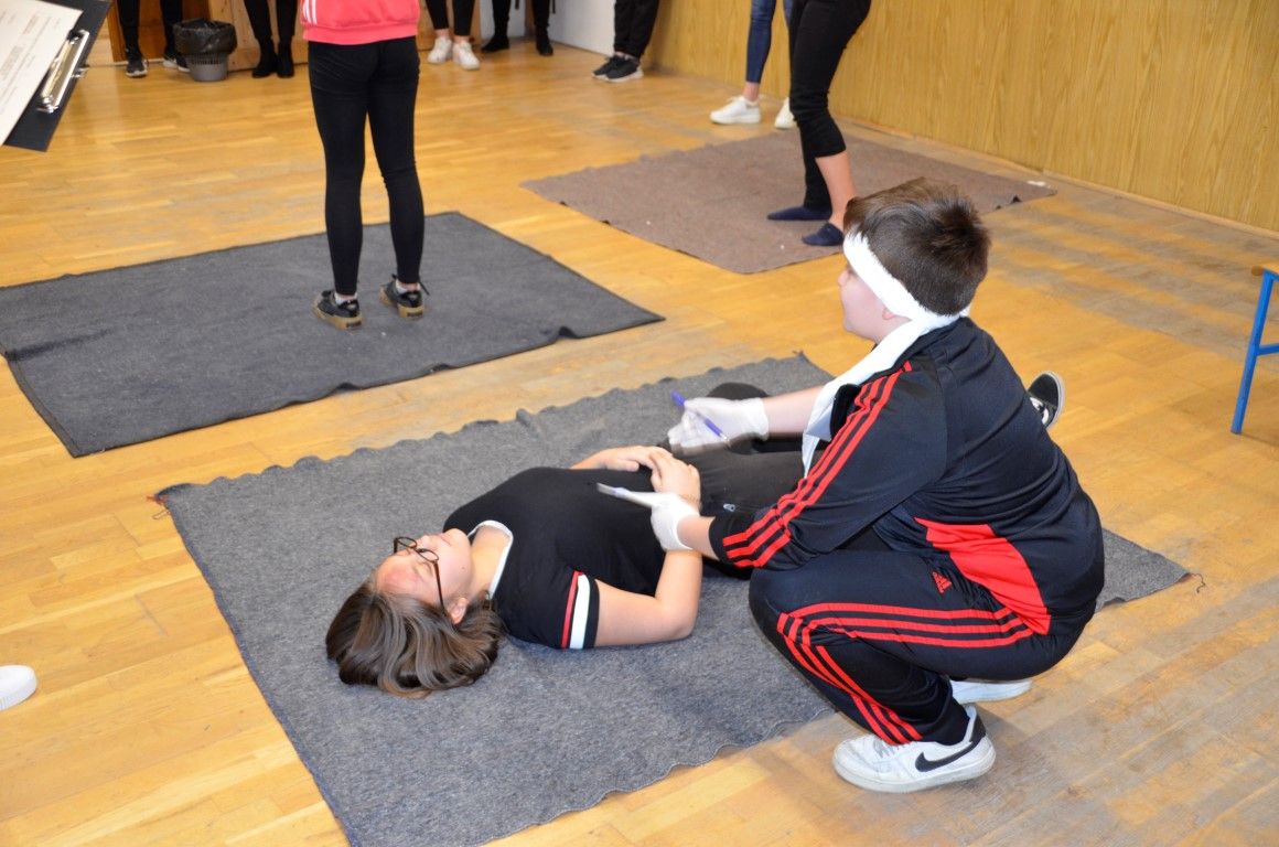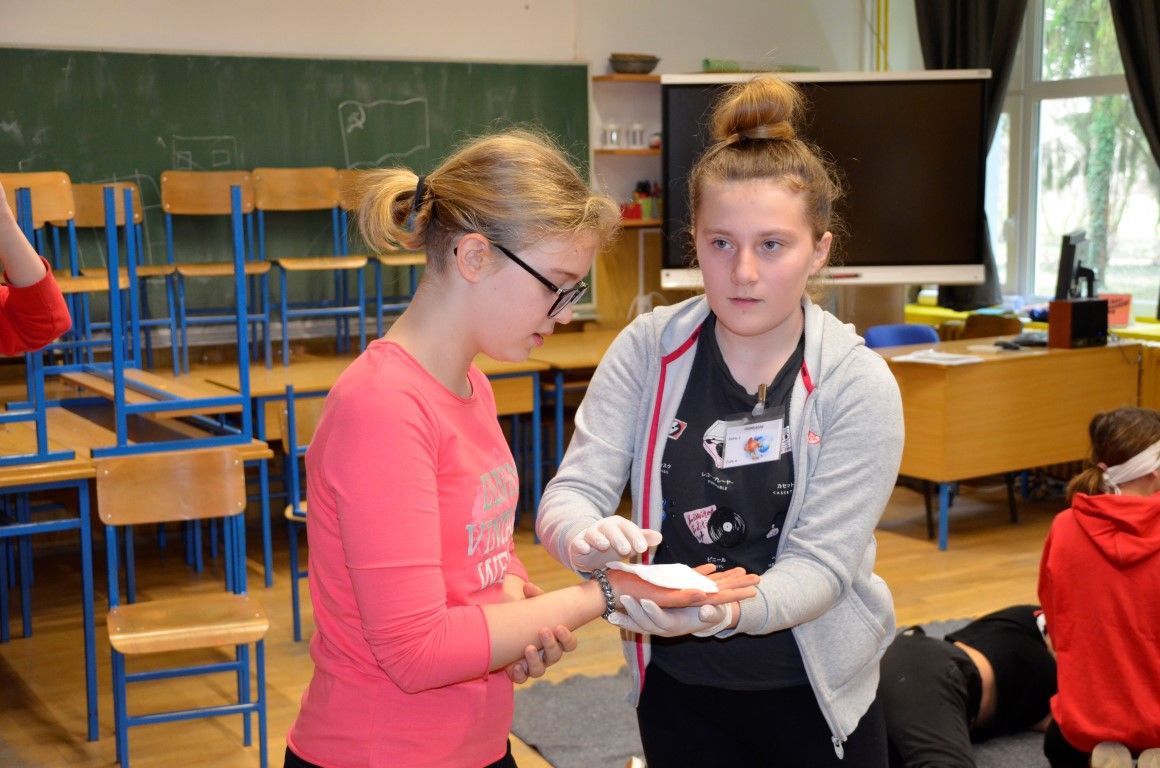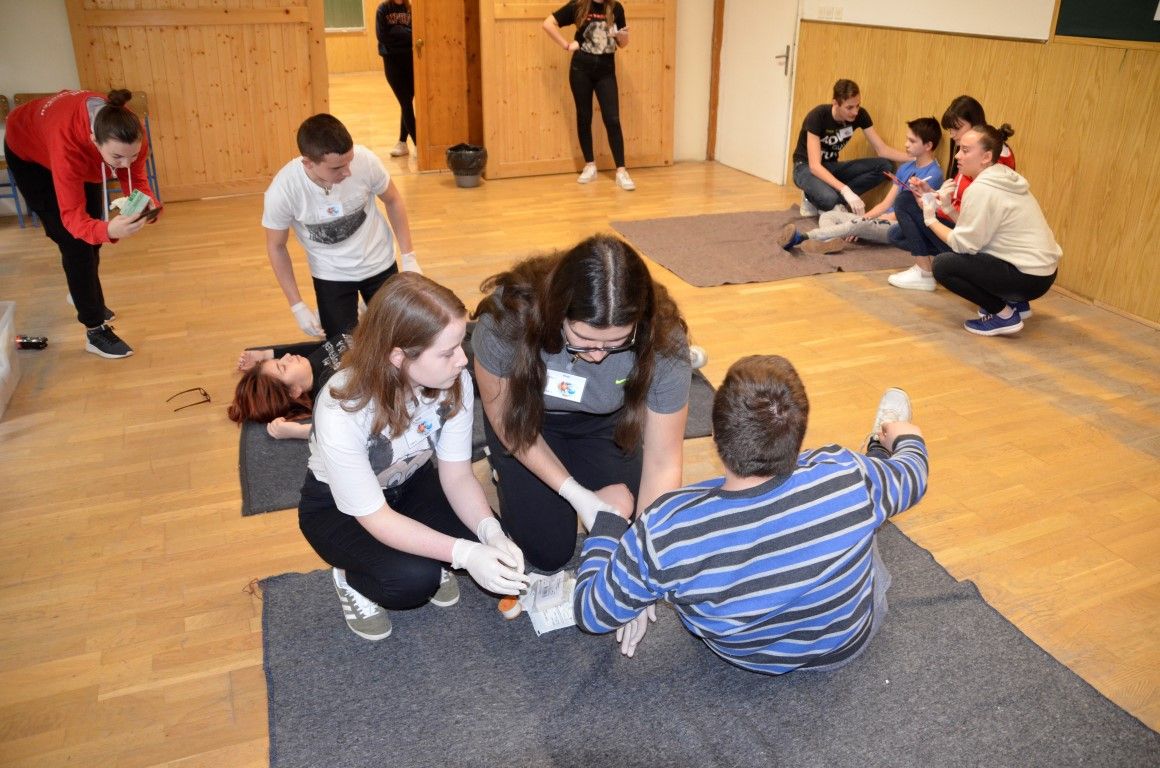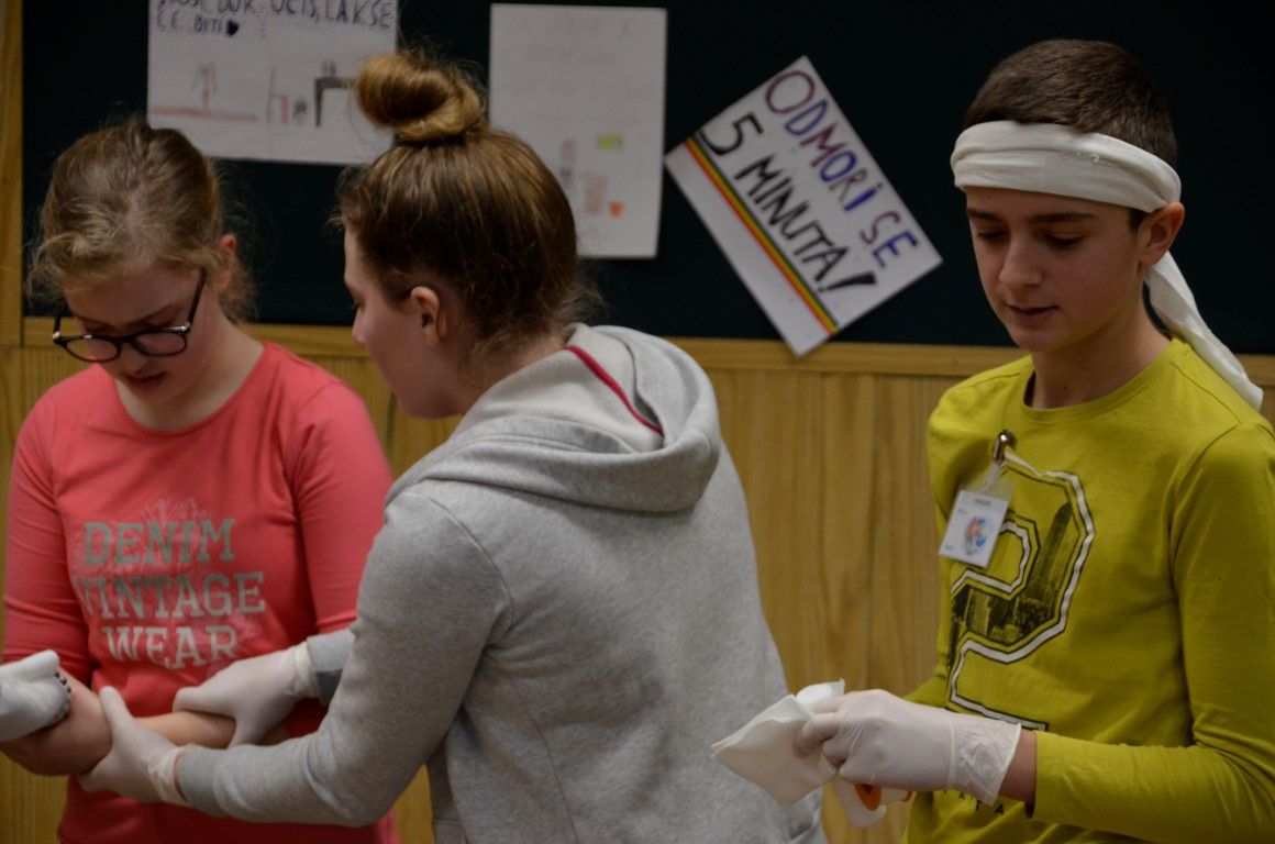 -Pišu četiri testa i pruža se prva medicinske pomoć na dva radilišta s po tri ozlijeđene osobe. Testovi su iz znanja o Međunarodnom pokretu Crvenog križa i Crvenog polumjeseca, Hrvatskom Crvenom križu, Međunarodnom humanitarnom pravu i ljudskim pravima i provjera znanja prve medicinske pomoći, pojasnila je Sanela Buljan voditeljica Kluba mladih Crvenog križa Valpovo.