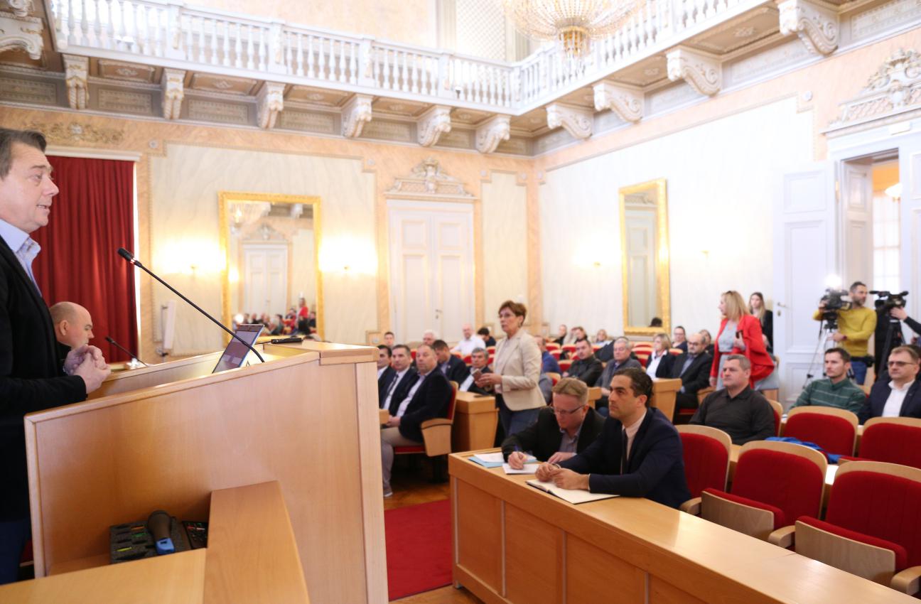 Jučer je u Velikoj vijećnici Osječko-baranjske županije održana 5. sjednica Stožera na koju su osim članova pozvani i svi gradonačelnici i načelnici s područja županije kako bi ih vodstvo stožera upoznalo s trenutnim stanjem na području županije, ali i Hrvatske te kako bi im prenijelo upute Nacionalnog stožera.
